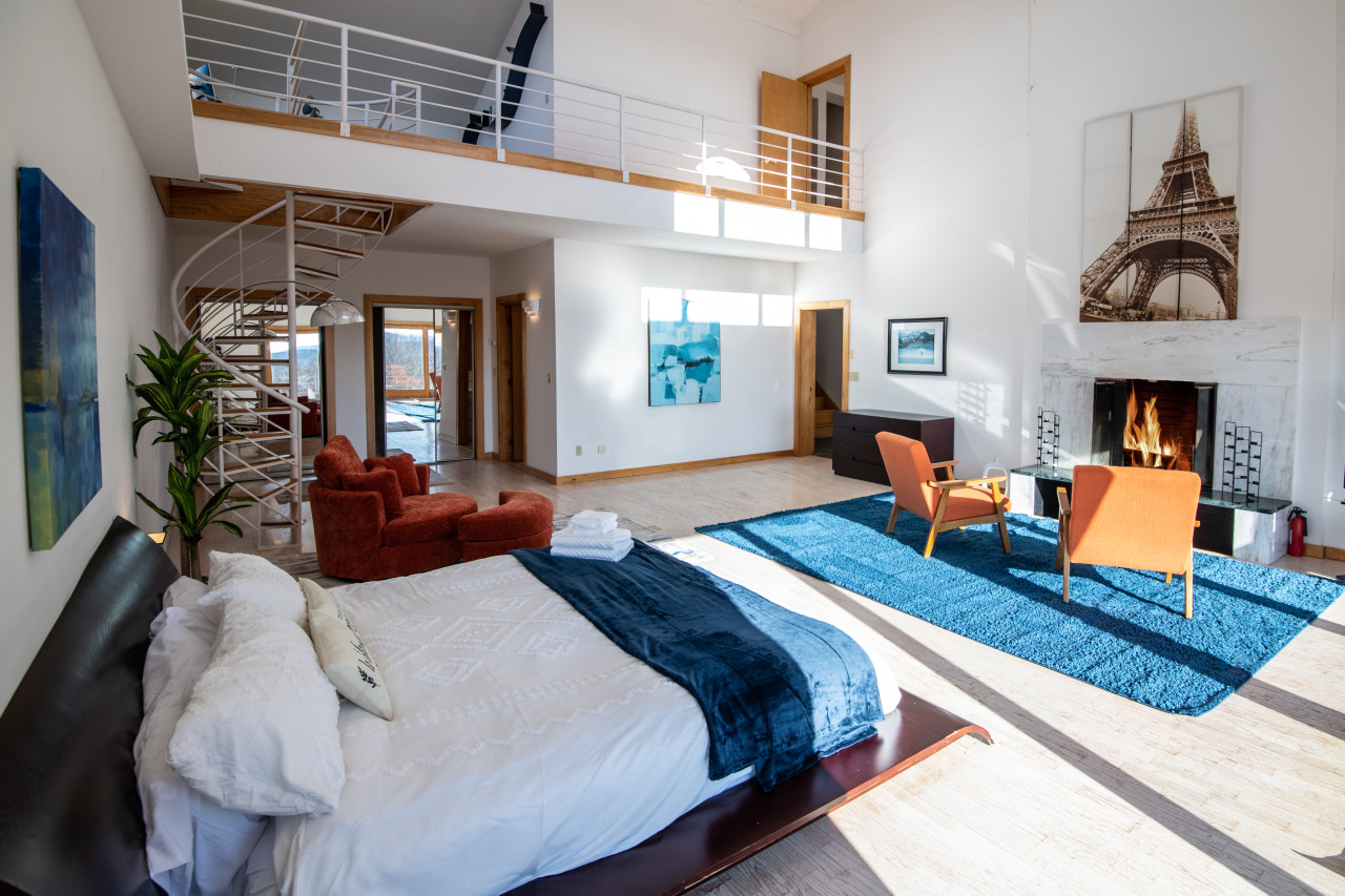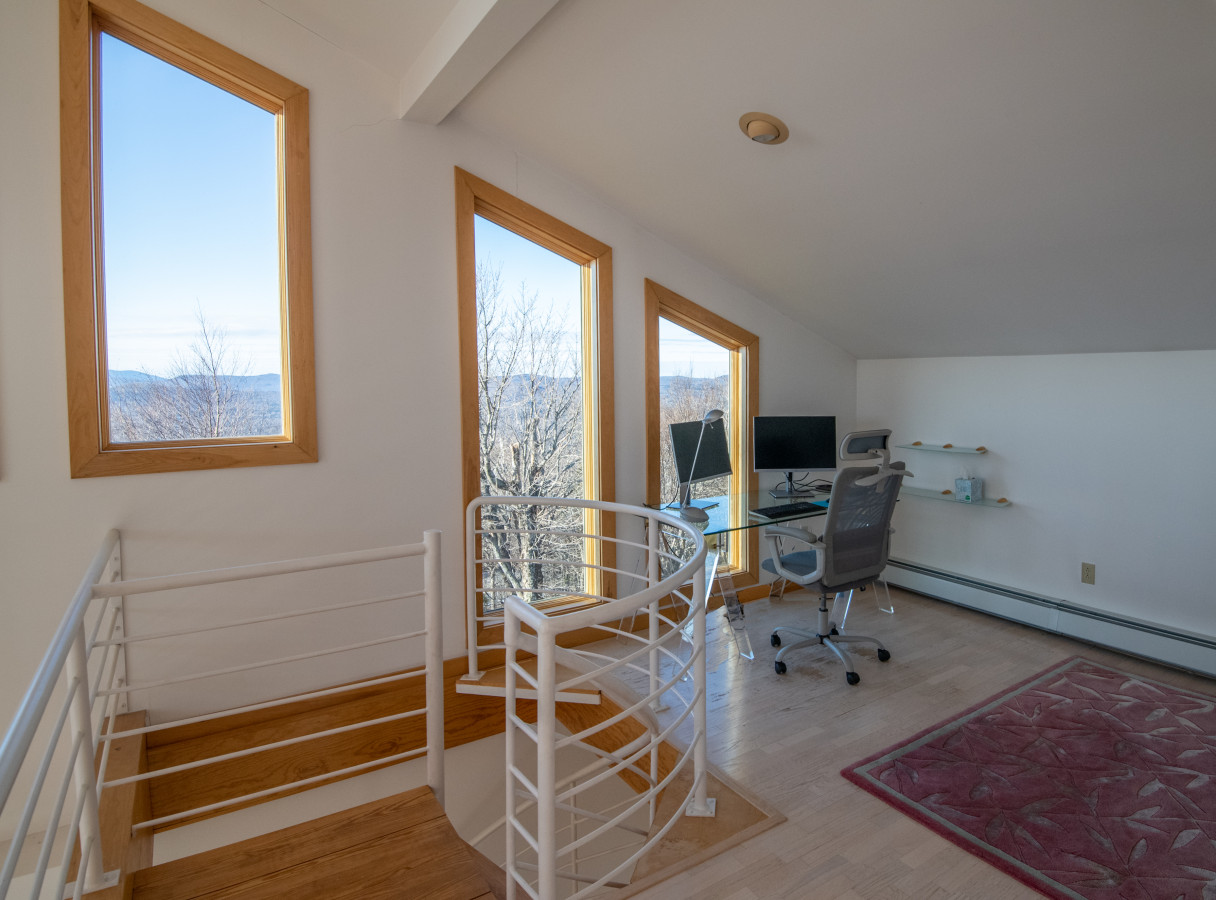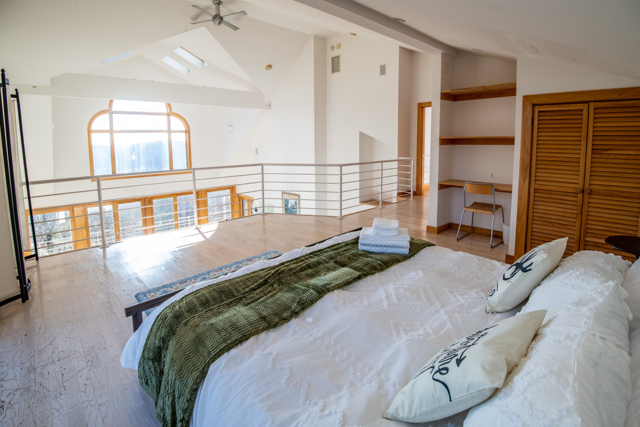 December 2025 5.00The house is in a beautiful spot at the top of a mountain with a wonderful view, especially at sunrise and sunset. The drive to Okemo took about 25 minutes. The space is generous, with one very large bedroom, one very small bedroom, and an open loft area with a king bed that is not private. It might be a good idea to provide some privacy screens. There are additional single beds in the basement, and it comfortably accommodated three families. The second floor does not have a bathroom, making it a bit inconvenient for people sleeping upstairs. The kitchen had the essential equipment we required, and despite being a bit small, it served our needs. There is a two-car garage and a Level 2 charger available for an electric vehicle. Communication from Milan was timely and accurate, and check-in was easy.