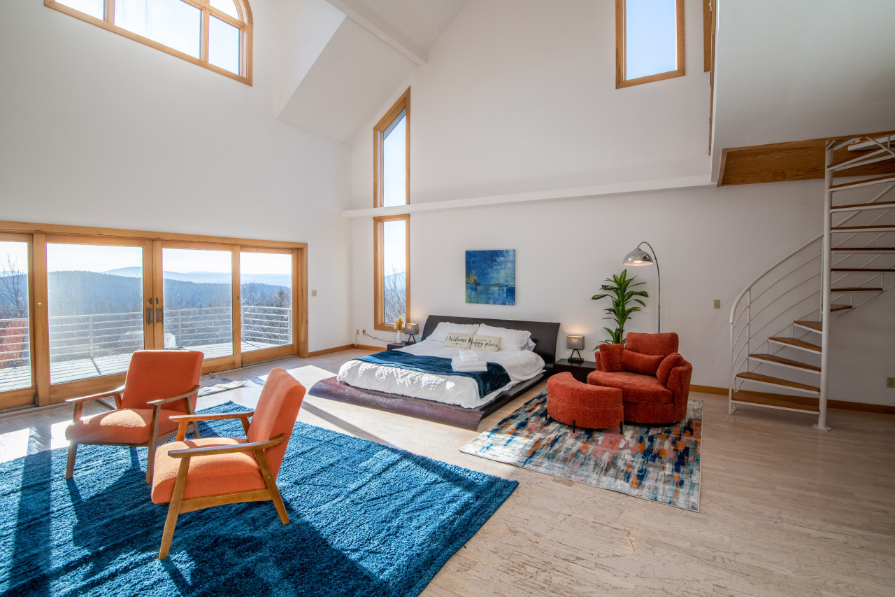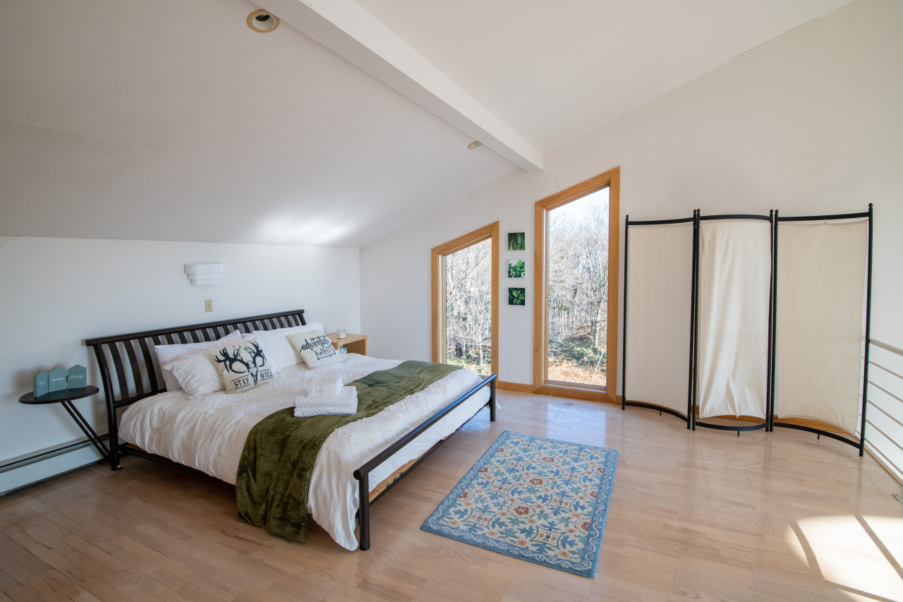 / nightEnjoy breathtaking views of the green mountains with stunning sunrises, sunsets, and stargazing opportunities. Relax in the newly installed hot tub, available year-round. Perched at an elevation of 2500 ft, this home is surrounded by 3 acres of lush wooded land. Whether it's summer, fall, or winter, the vistas of the Green Mountains are unparalleled from this mountaintop retreat. Conveniently located within a 30-min drive to 4 ski resorts (Okemo, Stratton, Bromley, and Magic) The house is a 4 bedroom/3 bath with a massive loft total of 2600 sq ft of living space. An architecturally contemporary and unique stay with an open floor plan for the kitchen/dining/living area is perfect to entertain family and friends. Moon Hill Retreat comes with an 800 sqft master bedroom with mountain views and a private marble fireplace. Have you imagined waking up to the floating clouds at your level? This privately owned house is a retreat for folks to enjoy and relax in the woods while experiencing luxury indoors. Amenities include a stone fireplace, wet bar, kitchen island, skylights, and sliders to an expansive deck. The house has a unique rooftop at the highest level which can be accessed (with permission of the host if not raining or frosty) for witnessing the 360 mountain views. Open only seasonal & prior requests while booking. We are looking forward for you to enjoy our place as much as we do and make memories for a lifetime! Some more details on the layout: Master Bedroom 1 [Level 1]: King Bed Bedroom 2 [Level 2]: Double Bed Bedroom 3 [Level 0]: 2 Twin Bed --> This is also the game room Loft [Level 2]: King Bed --> This is listed as the 4th bedroom in the listing details Additional Beds: 2-floor mattresses + 1 air mattress You have the option to go from level 1 to level 2 of the house using either spiral stairs or traditional stairs. You will be given a combination for a keypad entry to the main door and garage. If you like exploring the woods, hiking, skiing, watching sunrises and sunsets, or even shopping for antiques from the nearby country stores; you are indeed in your own Disney land. HIKES: - Mount Ephraim is a 4.3 mile out and back trail - The Lost Mine Trail is a 2.1 mile loop trail - Butternut Hill Loop is a 1.9 mile loop trail - Lowell Lake is a 3.1 mile loop trail - Buttermilk Falls Trail is a 0.5 mile heavily trafficked out and back trail that features a waterfall and a pond perfect for summer and fall colors Share with us if you find another gem in the area SKI RESORTS: - Magic : 11 miles, 20 mins away - Okemo : 14.5 miles, 29 mins away - Bromley : 16 miles, 26 mins away - Stratton : 23 miles, 35 mins away SKYLINE DRIVE: The most famous Equinox Mountain Skyline Drive is just 34 miles from our house. HOME: You are renting the entire house. No other people will be on the property during the duration of your stay. WINTER: As you'd imagine, you have decided to stay on a mountain top to enjoy what it's best known for. You absolutely need to have a 4-wheel drive during winter to drive up the house. Our caretakers do a great job plowing, snow cleaning, blowing, and ensuring the road is clean but in the event of heavy snow, a 2-wheel drive will be difficult. WIFI: We have a 1Gbps high-speed fiber-optic connection available. The WIFI password will be shared prior to your stay PETS: We are dog-lovers ourselves and welcome dogs and cats at our house. SMOKING: This is no smoking house and any kind of smoking is strictly prohibited. CAMERAS: We have 3 outdoor entryway cameras, 1 on the main door, 1 on the deck, and the last on the garage which helps us in maintaining the property from a distance. The video is motion activated, but can be checked at any time by the hosts via live feed. Any attempt at disabling or obscuring the cameras is prohibited. GUNS: Guns or firearms are absolutely prohibited on this property.