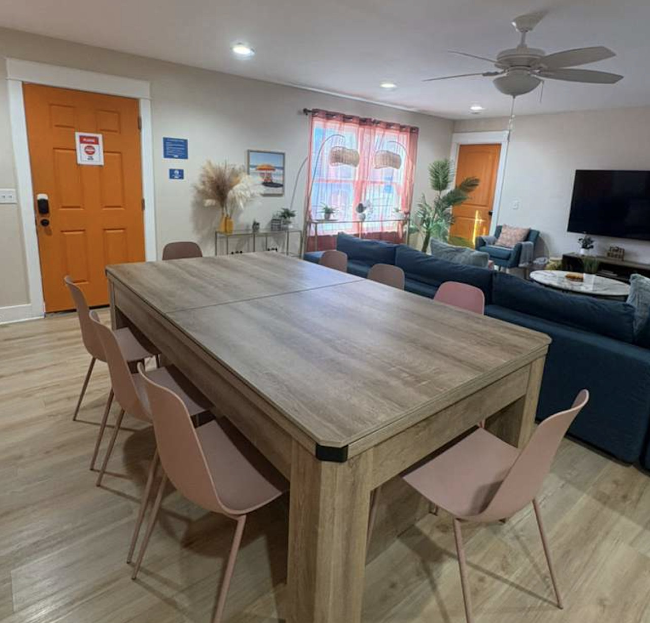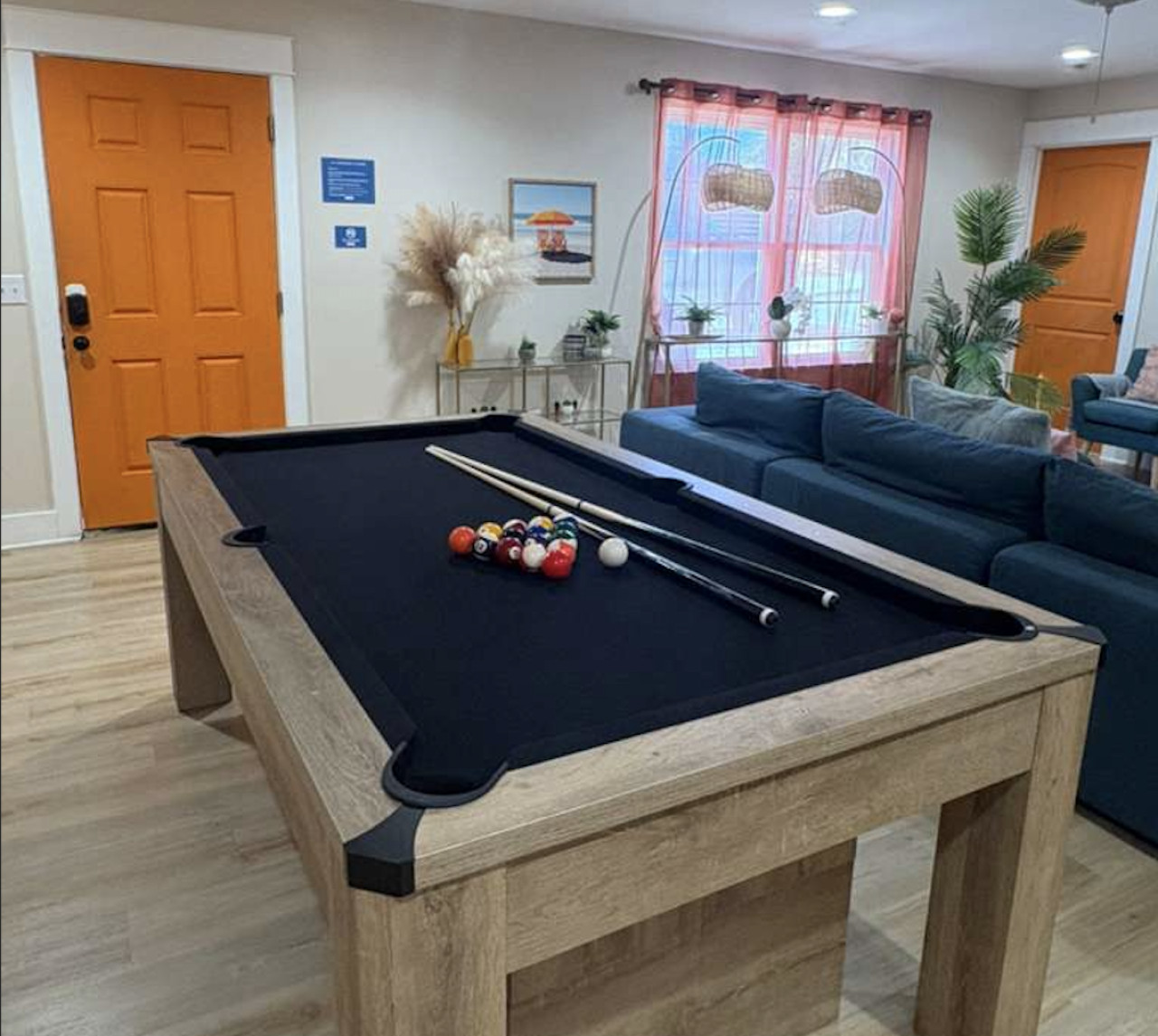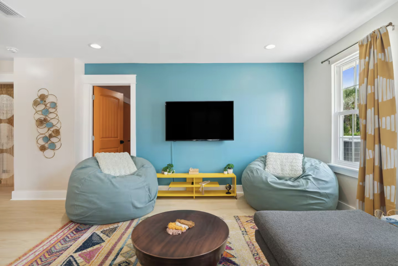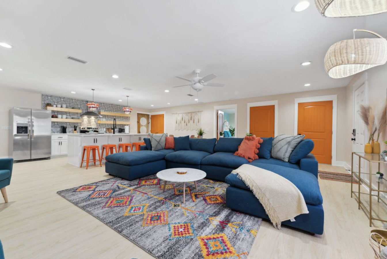 / nightYour next unforgettable escape begins at The Orange – Panama City Beach’s most unique retreat! This renovated ranch-style single family home has 9 bedrooms, 6.5 baths and sleeps 20 all on a single level with multiple hang out areas in the house. Just a one-minute walk to the world’s most beautiful white sand beaches and crystal-blue waters, it’s the perfect place to relax, explore, and make lasting memories. PLEASE NOTE: Our home's backyard is undergoing a transformation and we are adding a Heated Pool, Pickleball court and Mini-golf/putt putt for our Y2026 guests. As a result the backyard is inaccessible for the guests. While there will be our contstruction team on select days of the week, we will ensure it won't affect the quality of your stay. Please note that the construction will begin on Oct 22, 2025 and span until January 30, 2026. The rates are adjusted accordingly. Property Amenities: * 9 Bedrooms, 6.5 bathrooms: 13 beds total * Beach Toys/Essentials * Fully Stocked Kitchen(Spices, Salt, Sugar, Cooking ware, etc.) * Game Room (FoodBall, Pool Table, Board Games) * Central AC * Outdoor Dining & Grill (coming soon in 2026!) * Pickleball court * Heated Pool * Outdoor grilling and lounge area * Mini-golf Space: Experience luxury in our freshly renovated beach bungalow that offers 13 comfortable beds and 6 full bathrooms, making it an ideal choice for large families, groups, or special gatherings. The bedroom layout includes a mix of queen, bunk beds and king beds, ensuring a comfortable night's sleep for everyone. Here's the full breakdown: Bedroom 1: Queen Bedroom 2: Queen over Queen bunk Bedroom 3: Twin over Twin bunk x2 Bedroom 4: Queen Bedroom 5: Queen Bedroom 6: King Bedroom 7: Queen Bedroom 8: Queen Bedroom 9: King The fully stocked kitchen is designed with convenience in mind, featuring modern stainless steel appliances—including a refrigerator, dishwasher, oven, stove, and microwave—plus all the essential cookware and utensils for preparing your favorite meals. Start your day with a fresh brew from the Keurig or classic coffee maker, and unwind in the evening with a glass of wine using the provided stemware. Gather around the spacious dining area, where there’s plenty of seating for everyone to enjoy meals together. Outdoor: On warm Florida days, take a refreshing dip in the cowboy tub—perfect for cooling off after a walk to the beach. When the temperatures drop, cozy up around the firepit and enjoy the glow while making memories with family and friends. Whether you’re soaking up the sun or relaxing under the stars, this outdoor retreat adds an extra layer of charm to your stay. ADDITIONAL: We do have video surveillance of the front door, driveway which helps us in maintaining the property from a distance. The video is motion activated, but can be checked at any time by the hosts via live feed. Any attempt at disabling or obscuring the cameras is prohibited. We welcome all groups (friends and families) to our home, as long as rules are followed. We have a zero tolerance policy for large parties and events. PETS: - Up to 2 pets allowed ($100 fee per stay). Approval needed for more, with extra fees. - Keep pets leashed while walking in the neighborhood. - No unattended pets - No pets on furniture (sofas, beds, etc). - Clean up after them inside and outside. Dog poop needs to be bagged and disposed off from the yard also. - Prevent excessive barking or noise. While $100 pet fee covers extra cleaning, but additional charges apply for uncollected pet waste, soiled linens, or damaged furniture. Thanks for keeping our space pet-friendly for all! SMOKING/DRUGS POLICY This is no smoking and no drug use house. Use of such is strictly prohibited inside or outside on premises. $500 fee for evidence of smoking or drug use plus additional cleaning fees apply. The nightly rates are reflective of minimum guest booking with no pets. We request you to add the exact count of guests, children and pets at the time of reservation for the nightly rates to be accurately reflected for any additional charges.