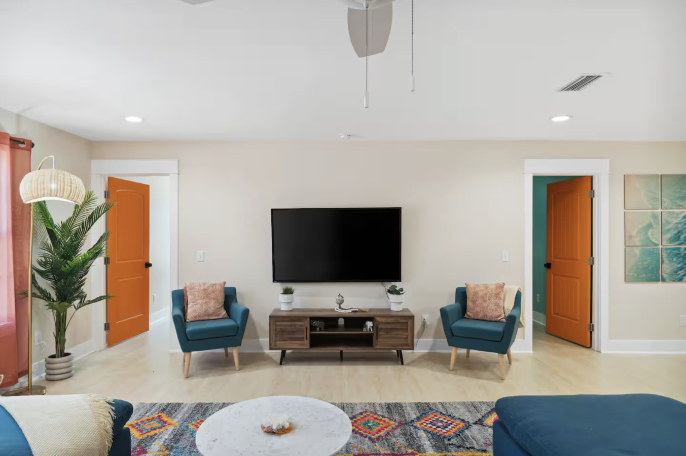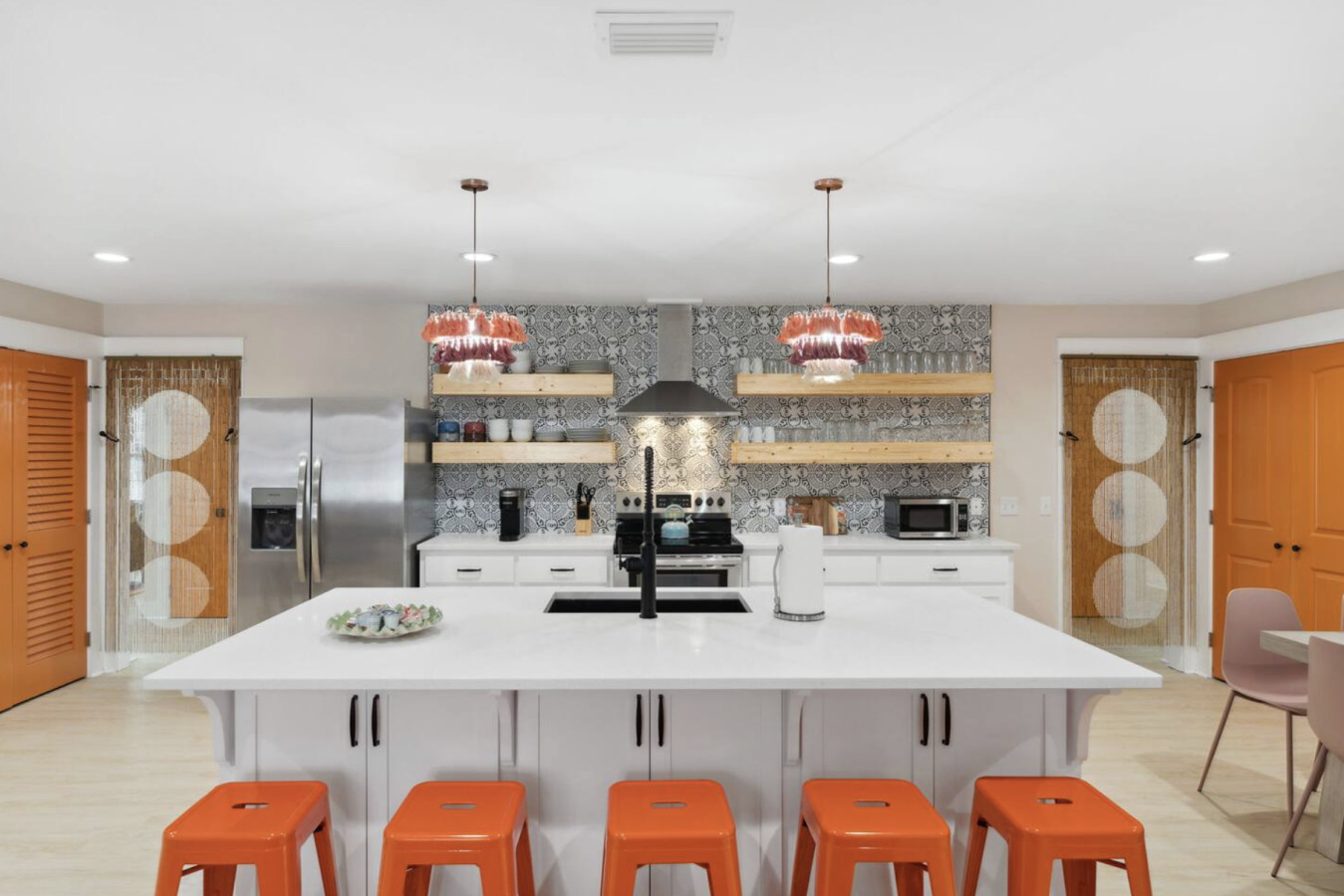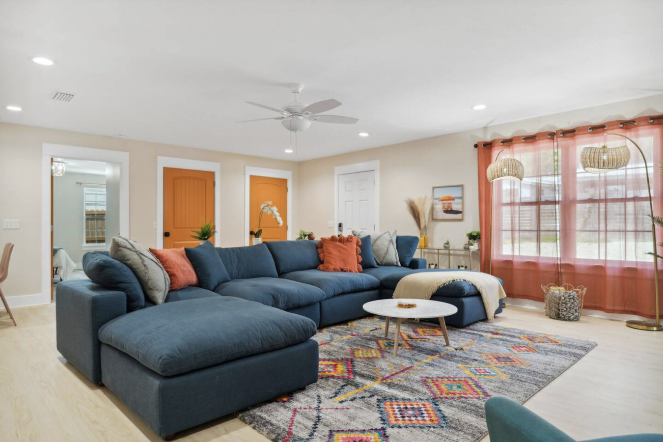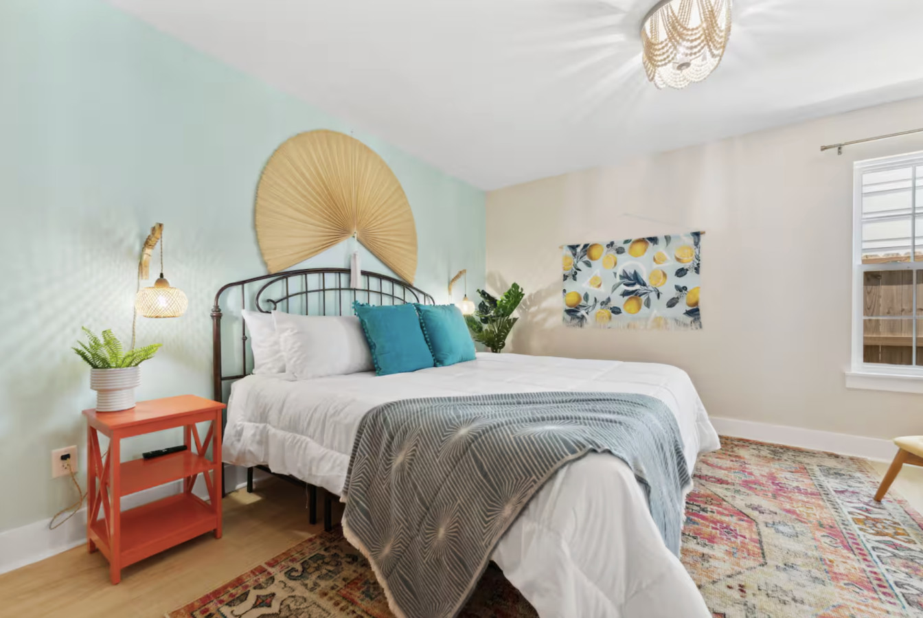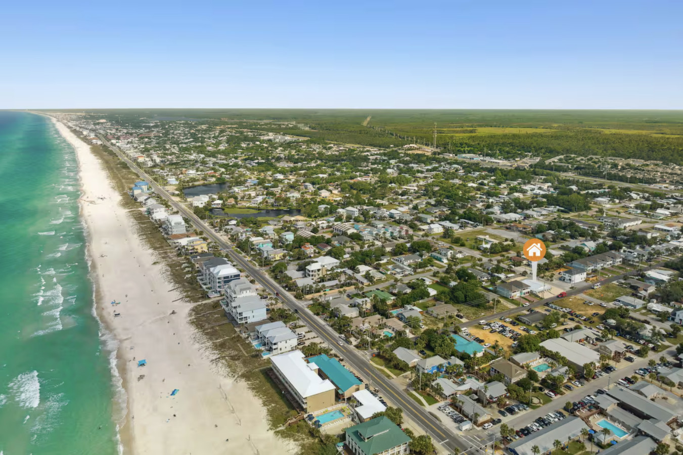/ nightYour next unforgettable escape begins at The Orange – Panama City Beach’s most unique retreat! This renovated ranch-style single family home has 9 bedrooms, 6.5 baths and sleeps 20 all on a single level with multiple hang out areas in the house. Just a one-minute walk to the world’s most beautiful white sand beaches and crystal-blue waters, it’s the perfect place to relax, explore, and make lasting memories. PLEASE NOTE: Our home's backyard is undergoing a transformation and we are adding a Heated Pool, Pickleball court and Mini-golf/putt putt for our Y2026 guests. As a result the backyard is inaccessible for the guests. While there will be our contstruction team on select days of the week, we will ensure it won't affect the quality of your stay. Please note that the construction will begin on Oct 22, 2025 and span until January 30, 2026. The rates are adjusted accordingly. Property Amenities: * 9 Bedrooms, 6.5 bathrooms: 13 beds total * Beach Toys/Essentials * Fully Stocked Kitchen(Spices, Salt, Sugar, Cooking ware, etc.) * Game Room (FoodBall, Pool Table, Board Games) * Central AC * Outdoor Dining & Grill (coming soon in 2026!) * Pickleball court * Heated Pool * Outdoor grilling and lounge area * Mini-golf Space: Experience luxury in our freshly renovated beach bungalow that offers 13 comfortable beds and 6 full bathrooms, making it an ideal choice for large families, groups, or special gatherings. The bedroom layout includes a mix of queen, bunk beds and king beds, ensuring a comfortable night's sleep for everyone. Here's the full breakdown: Bedroom 1: Queen Bedroom 2: Queen over Queen bunk Bedroom 3: Twin over Twin bunk x2 Bedroom 4: Queen Bedroom 5: Queen Bedroom 6: King Bedroom 7: Queen Bedroom 8: Queen Bedroom 9: King The fully stocked kitchen is designed with convenience in mind, featuring modern stainless steel appliances—including a refrigerator, dishwasher, oven, stove, and microwave—plus all the essential cookware and utensils for preparing your favorite meals. Start your day with a fresh brew from the Keurig or classic coffee maker, and unwind in the evening with a glass of wine using the provided stemware. Gather around the spacious dining area, where there’s plenty of seating for everyone to enjoy meals together. Outdoor: On warm Florida days, take a refreshing dip in the cowboy tub—perfect for cooling off after a walk to the beach. When the temperatures drop, cozy up around the firepit and enjoy the glow while making memories with family and friends. Whether you’re soaking up the sun or relaxing under the stars, this outdoor retreat adds an extra layer of charm to your stay. ADDITIONAL: We do have video surveillance of the front door, driveway which helps us in maintaining the property from a distance. The video is motion activated, but can be checked at any time by the hosts via live feed. Any attempt at disabling or obscuring the cameras is prohibited. We welcome all groups (friends and families) to our home, as long as rules are followed. We have a zero tolerance policy for large parties and events. PETS: - Up to 2 pets allowed ($100 fee per stay). Approval needed for more, with extra fees. - Keep pets leashed while walking in the neighborhood. - No unattended pets - No pets on furniture (sofas, beds, etc). - Clean up after them inside and outside. Dog poop needs to be bagged and disposed off from the yard also. - Prevent excessive barking or noise. While $100 pet fee covers extra cleaning, but additional charges apply for uncollected pet waste, soiled linens, or damaged furniture. Thanks for keeping our space pet-friendly for all! SMOKING/DRUGS POLICY This is no smoking and no drug use house. Use of such is strictly prohibited inside or outside on premises. $500 fee for evidence of smoking or drug use plus additional cleaning fees apply. The nightly rates are reflective of minimum guest booking with no pets. We request you to add the exact count of guests, children and pets at the time of reservation for the nightly rates to be accurately reflected for any additional charges.