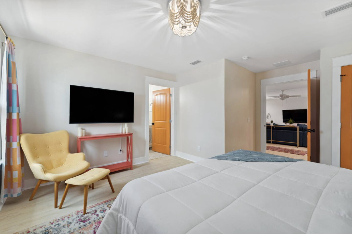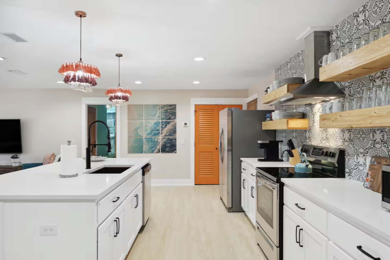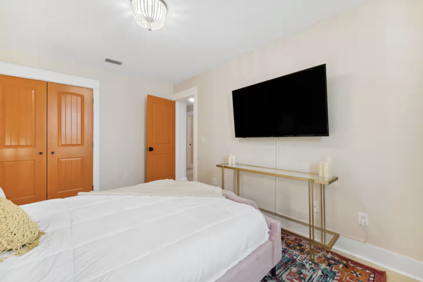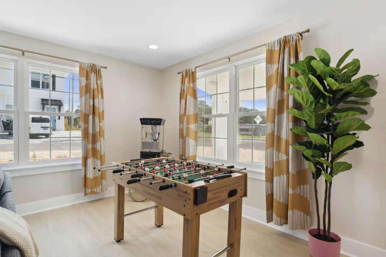/ nightYour next unforgettable escape begins at The Orange – Panama City Beach’s most unique retreat! This renovated ranch-style single family home has 9 bedrooms, 6.5 baths and sleeps 20 all on a single level with multiple hang out areas in the house. Just a one-minute walk to the world’s most beautiful white sand beaches and crystal-blue waters, it’s the perfect place to relax, explore, and make lasting memories. PLEASE NOTE: Our home's backyard is undergoing a transformation and we are adding a Heated Pool, Pickleball court and Mini-golf/putt putt for our Y2026 guests. As a result the backyard is inaccessible for the guests. While there will be our contstruction team on select days of the week, we will ensure it won't affect the quality of your stay. Please note that the construction will begin on Oct 22, 2025 and span until January 30, 2026. The rates are adjusted accordingly. Property Amenities: * 9 Bedrooms, 6.5 bathrooms: 13 beds total * Beach Toys/Essentials * Fully Stocked Kitchen(Spices, Salt, Sugar, Cooking ware, etc.) * Game Room (FoodBall, Pool Table, Board Games) * Central AC * Outdoor Dining & Grill (coming soon in 2026!) * Pickleball court * Heated Pool * Outdoor grilling and lounge area * Mini-golf Space: Experience luxury in our freshly renovated beach bungalow that offers 13 comfortable beds and 6 full bathrooms, making it an ideal choice for large families, groups, or special gatherings. The bedroom layout includes a mix of queen, bunk beds and king beds, ensuring a comfortable night's sleep for everyone. Here's the full breakdown: Bedroom 1: Queen Bedroom 2: Queen over Queen bunk Bedroom 3: Twin over Twin bunk x2 Bedroom 4: Queen Bedroom 5: Queen Bedroom 6: King Bedroom 7: Queen Bedroom 8: Queen Bedroom 9: King The fully stocked kitchen is designed with convenience in mind, featuring modern stainless steel appliances—including a refrigerator, dishwasher, oven, stove, and microwave—plus all the essential cookware and utensils for preparing your favorite meals. Start your day with a fresh brew from the Keurig or classic coffee maker, and unwind in the evening with a glass of wine using the provided stemware. Gather around the spacious dining area, where there’s plenty of seating for everyone to enjoy meals together. Outdoor: On warm Florida days, take a refreshing dip in the cowboy tub—perfect for cooling off after a walk to the beach. When the temperatures drop, cozy up around the firepit and enjoy the glow while making memories with family and friends. Whether you’re soaking up the sun or relaxing under the stars, this outdoor retreat adds an extra layer of charm to your stay. ADDITIONAL: We do have video surveillance of the front door, driveway which helps us in maintaining the property from a distance. The video is motion activated, but can be checked at any time by the hosts via live feed. Any attempt at disabling or obscuring the cameras is prohibited. We welcome all groups (friends and families) to our home, as long as rules are followed. We have a zero tolerance policy for large parties and events. PETS: - Up to 2 pets allowed ($100 fee per stay). Approval needed for more, with extra fees. - Keep pets leashed while walking in the neighborhood. - No unattended pets - No pets on furniture (sofas, beds, etc). - Clean up after them inside and outside. Dog poop needs to be bagged and disposed off from the yard also. - Prevent excessive barking or noise. While $100 pet fee covers extra cleaning, but additional charges apply for uncollected pet waste, soiled linens, or damaged furniture. Thanks for keeping our space pet-friendly for all! SMOKING/DRUGS POLICY This is no smoking and no drug use house. Use of such is strictly prohibited inside or outside on premises. $500 fee for evidence of smoking or drug use plus additional cleaning fees apply. The nightly rates are reflective of minimum guest booking with no pets. We request you to add the exact count of guests, children and pets at the time of reservation for the nightly rates to be accurately reflected for any additional charges.