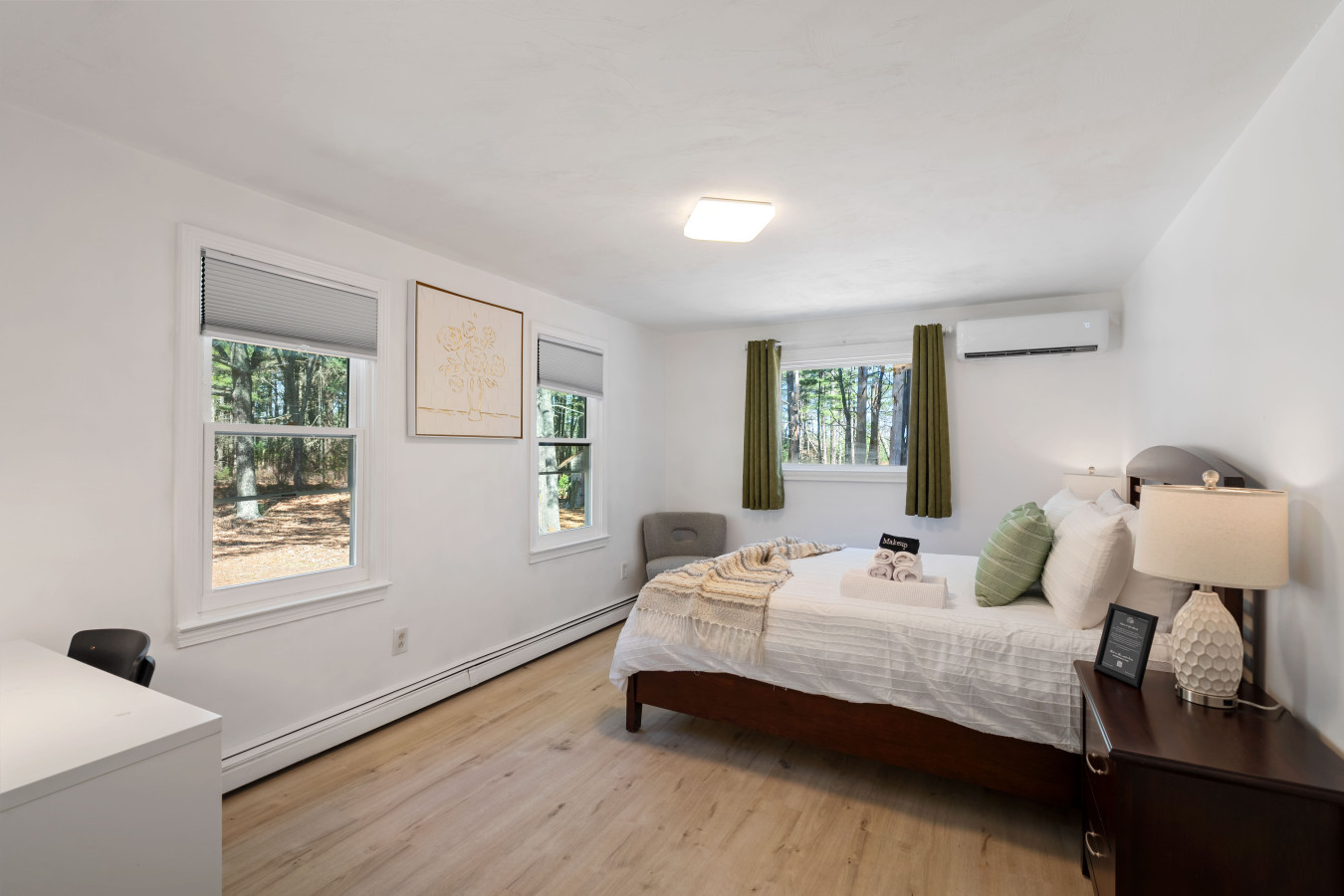 / night*Breathtaking Riverfront Hideaway in Wareham* Coastal charm meets modern comfort in this bright and spacious 4-bedroom, 2-bath home in Wareham, Massachusetts nestled along the serene banks of the Wareham River, this tranquil retreat offers panoramic water views — your perfect launchpad for exploring Cape Cod. Located only 1/2 mile to put your feet in the sand and enjoy the ocean Conveniently located near beaches, marinas, cranberry bogs, and Wareham Crossing’s shops and dining, this home is ideal for families, groups, or professionals looking for a relaxing coastal escape. You're just minutes away from Onset Beach, Cape Cod Canal, and Route 6 for easy day trips to Falmouth, Sandwich, or Martha's Vineyard ferries. *The Space* Welcome to your Cape getaway! This thoughtfully designed single-family home offers open and airy living space — perfect for vacationers who value comfort, style, and convenience. *4 Bedrooms* Level 1: One Queen bed Second queen bed Level 2: One king bed 1 bunk beds (twin over full) and another full bed Each room comes with fresh linens, ample closet space, and blackout curtains for restful sleep. *2 Full Bathrooms* Modern and clean showers, luxury towels, and all included toiletries. *Fully Stocked Kitchen* Enjoy a gourmet kitchen with stainless steel appliances, quartz countertops, cookware, bakeware, coffee maker and everything you need for a perfect dinner indoors. *Living + Dining* An open-concept living and dining area with a smart TV, cozy sofa, and a dining table perfect for group dinners or board games. Glass doors lead to the private backyard featuring a grill, patio furniture, and string lights — perfect for al fresco dining. *Entertainment Perks* -Featured bar area -Board games for all ages -High-speed Wi-Fi -Washer/Dryer for extended stays -Portable pack and play, high chair and kids utensils available *Outdoor Amenities* - Enjoy use of the large backyard with a fire pit, grill, and outdoor seating. A great space to unwind after a day at the beach or out on the water. - - From the home, you’ll have a view of the beautiful Wareham River. While there isn’t a pier directly on the property, you can take a short walk through the wooded area to reach the water. - Beaches around: Swifts Beach: 0.8 miles (~3 mins drive) Onset Beach: 5 miles (~13 mins drive) Shell Point Beach: 5.8 miles (~14 mins drive) *Parking* Driveway fits up to 3 cars *Guest Access* Guests have access to the entire home, front and back yards, and full driveway. Self-check-in with smart lock for your convenience. *Pet Policy * -We are pet-friendly! Up to 2 dogs are welcome with a $100 pet fee per stay. -Please keep pets off beds and furniture -Clean up after your pet (yard included) *Additional Notes* -NO parties or events allowed -Please register all guests, children, and pets at booking -Exterior security cameras are installed (front and back) for safety and property monitoring Whether you're planning a weekend retreat or a longer seaside stay, this Wareham home gives you the best of Cape Cod without the traffic. Minutes from beaches, restaurants, and classic New England charm — this is where memories are made