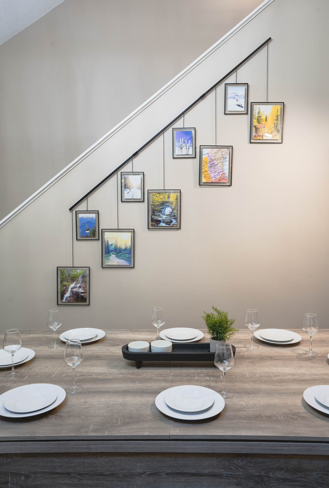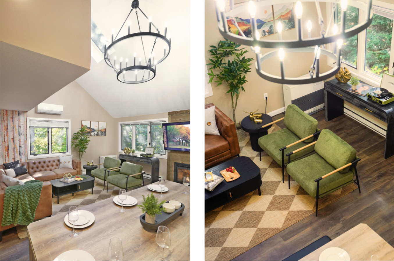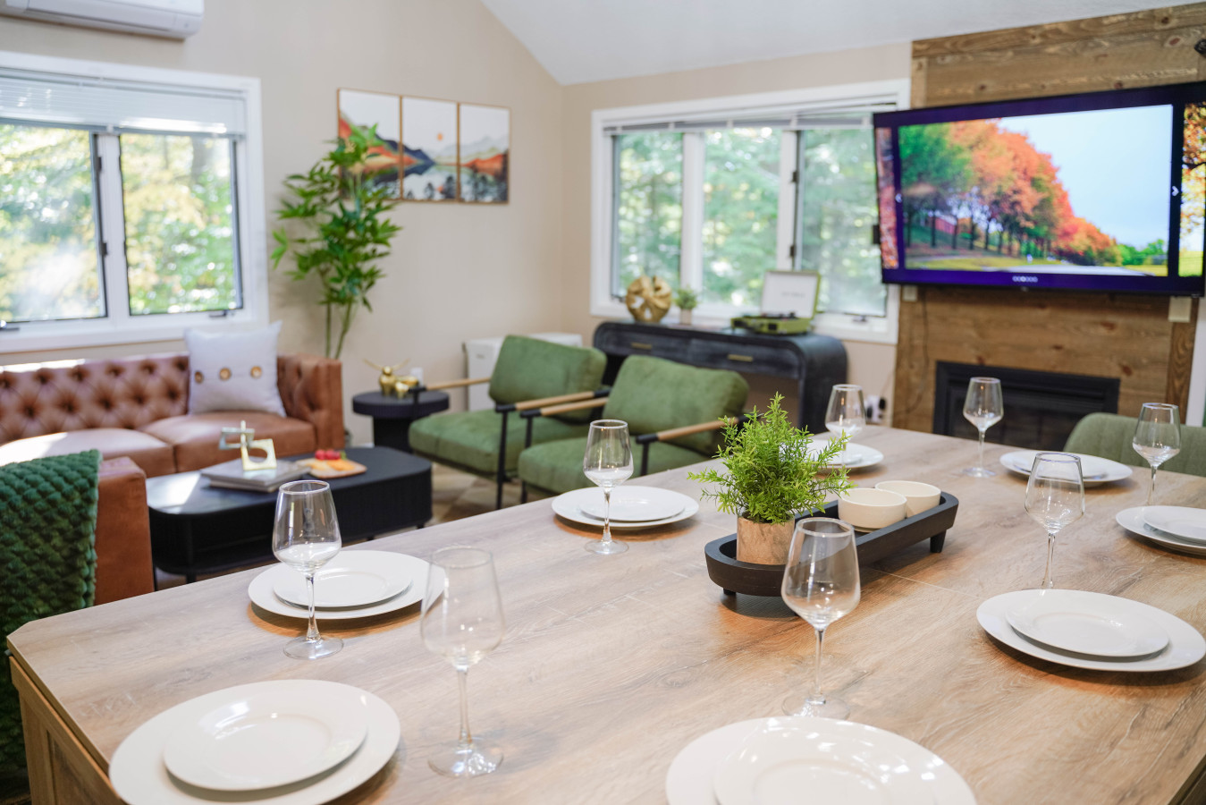 / nightWelcome to Cranmore Hideaway — a cozy, newly designed 3-bedroom, 2-bath townhome tucked away in the heart of North Conway. Surrounded by peaceful forest views, this charming retreat offers the perfect blend of rustic character and modern comfort, ideal for families, couples, or small groups year-round. Whether you're visiting for a snowy ski getaway, a vibrant fall foliage tour, a summer hiking adventure, or a springtime escape, you'll find comfort and inspiration here. Just 5 minutes from Cranmore Mountain Resort and close to downtown's shops, restaurants, and attractions, the location is perfect for exploring everything the White Mountains have to offer. After a day of adventure or relaxation, return to your private deck and unwind in the fresh mountain air. Cranmore Hideaway is your four-season sanctuary — book your stay today and make lasting memories in every season. DESCRIPTION: This 3-level townhome features 3 bedrooms, 2 bath, a cozy little retreat for your group to enjoy the white mountain area. We have sleeping arrangements for 8 guests. Main Level: The main level features an open-concept kitchen and living area with soaring vaulted ceilings and gorgeous wagon wheel chandelier. The living room boasts a wood-accented gas fireplace, creating a perfect spot to relax after a day on the slopes. This level also includes a bedroom (queen) and bathroom, along with a cozy coffee bar stocked with local brews for your enjoyment. Upper Level: The entire upper level is a large primary bedroom (king) suite with a bathroom, a standing shower and a separate soaking tub for apres-ski relaxation. Lower Level: It includes bunk beds (twin over twin) and a full sofa bed, offering additional sleeping space. This area can also serve as a second living room, perfect for playing games or watching TV. Amenities includes fully stocked kitchen, furnished bedrooms, smart TV (in the living room and all bedrooms), central heating, split ACs in all rooms and an exclusive access to the community's tennis court and playground. DINING AREA + GAME SPACE: We have a lovely dining nook (seats 8) where you can enjoy a relaxed meal or enjoy board games with your family and friends. The nook includes billiards, table tennis, and a dining table with dual storage bench seating (all in one). Challenge your companions to various games for a laid-back evening indoors. PARKING: House comes with 2 car dedicated parking spots (right outside the house) KITCHEN + COFFEE BAR When it's time to refuel, the fully equipped kitchen provides everything you need to whip up delicious meals and snacks. Enjoy your culinary creations at the dining table. Our coffee station provides a variety of local brews and teas. OUTDOOR: Step right outside from the main living area to a charming porch, perfect for summer dining or enjoying a BBQ grill session. Please note: A $1,000 refundable deposit will be charged to your credit card to cover any potential damages ABOUT THE LOCATION: After a day of outdoor fun, come home to unwind by the cozy gas fireplace. Whether you're here for skiing, hiking, or simply soaking in the serene surroundings, this condo is the perfect base for your Conway adventures. Book now for a memorable mountain escape! ADDITIONAL: We do have video surveillance of the front door, parking and backyard which helps us in maintaining the property from a distance. The video is motion activated, but can be checked at any time by the hosts via live feed. Any attempt at disabling or obscuring the cameras is prohibited. PETS: - Up to 2 pets allowed ($100 fee per stay). Approval needed for more, with extra fees. - Keep pets leashed while walking in the neighborhood. - No unattended pets - No pets on furniture (sofas, beds, etc). - Clean up after them inside and outside - Prevent excessive barking or noise. While $100 pet fee covers extra cleaning, but additional charges apply for uncollected pet waste, soiled linens, or damaged furniture. Thanks for keeping our space pet-friendly for all! SMOKING/DRUGS POLICY This is no smoking and no drug use house. Use of such is strictly prohibited inside or outside on premises. $500 fee for evidence of smoking or drug use plus additional cleaning fees apply. The nightly rates are reflective of minimum guest booking with no pets. We request you to add the exact count of guests, children and pets at the time of reservation for the nightly rates to be accurately reflected for any additional charges.