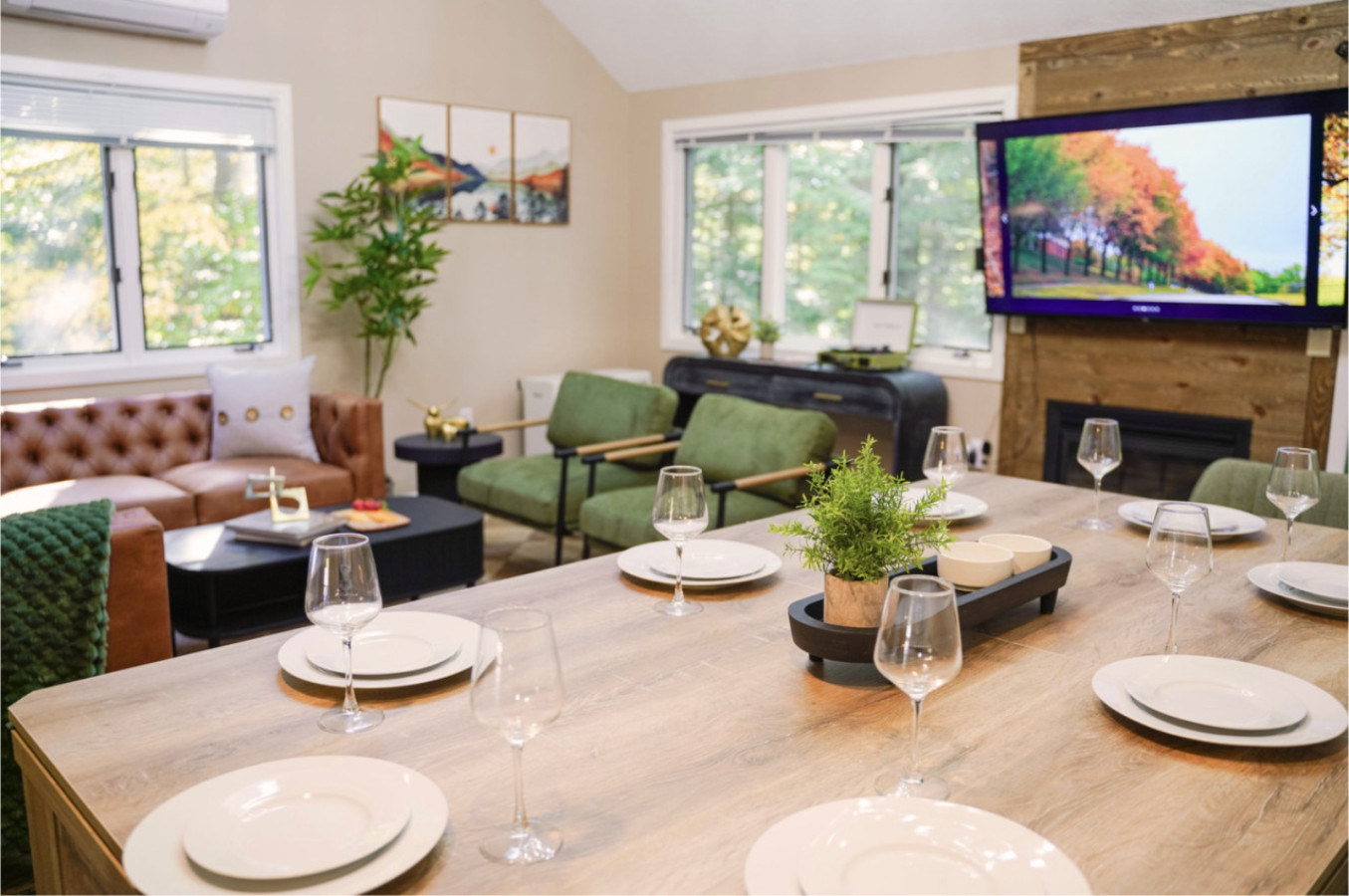 August 2025 5.00Wonderful place in a pristine, forested setting. Fun extras, like a dining room table that converts into ping-pong or billiards and a Victrola record player. Wonderful, sitting area adjacent to table for conversation and entertainment. Appreciate Owner’s flexibility to bring our dogs. Unit part of a duplex. OneNote for future guests, Apple Maps worked better than Waze… for some reason the street isn’t on Waze. Suggest putting the unit number the host gives you as the street address number for Apple Maps. Google maps also did a better job than Waze but strongly suggest Apple Maps for the first time you’re driving in.