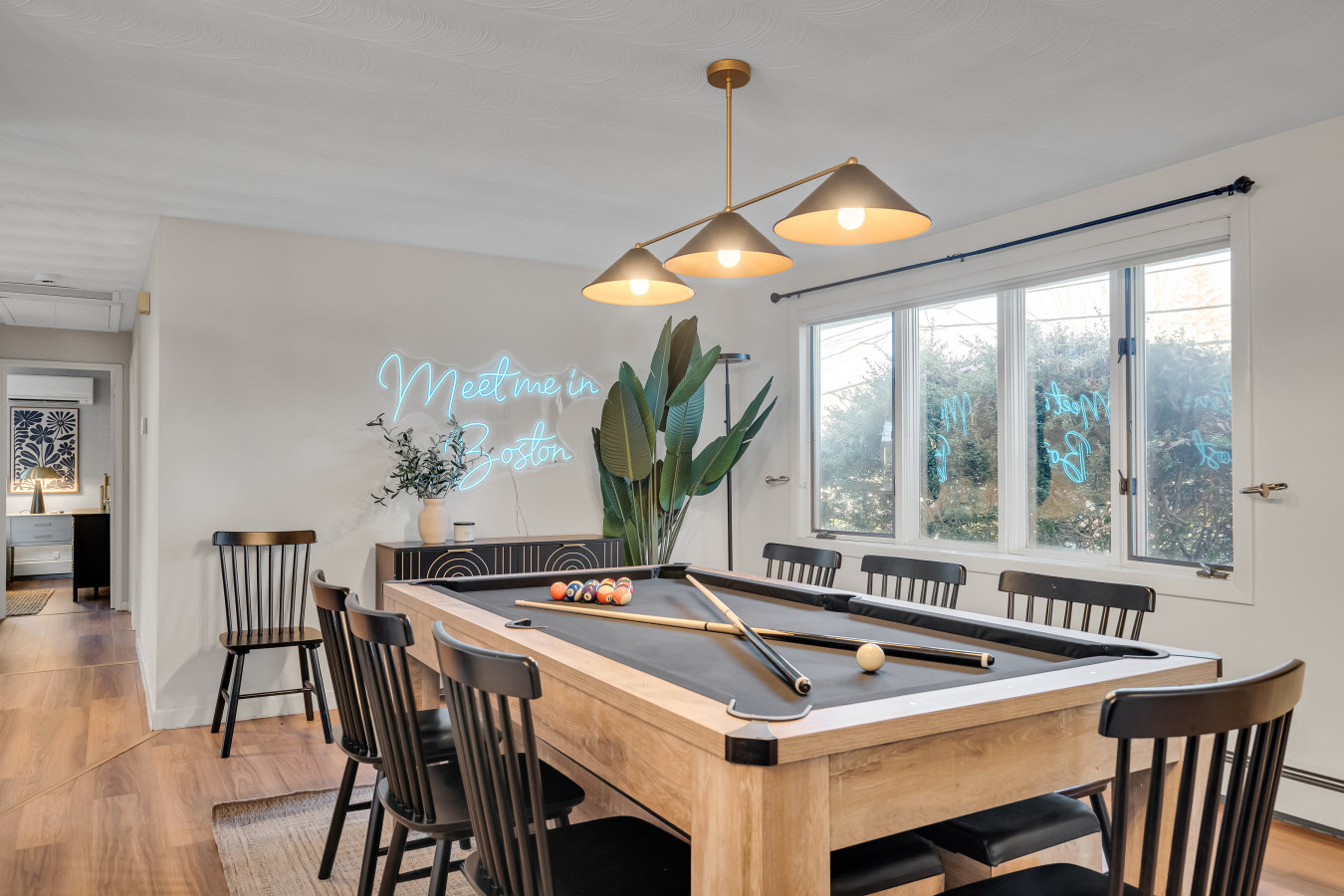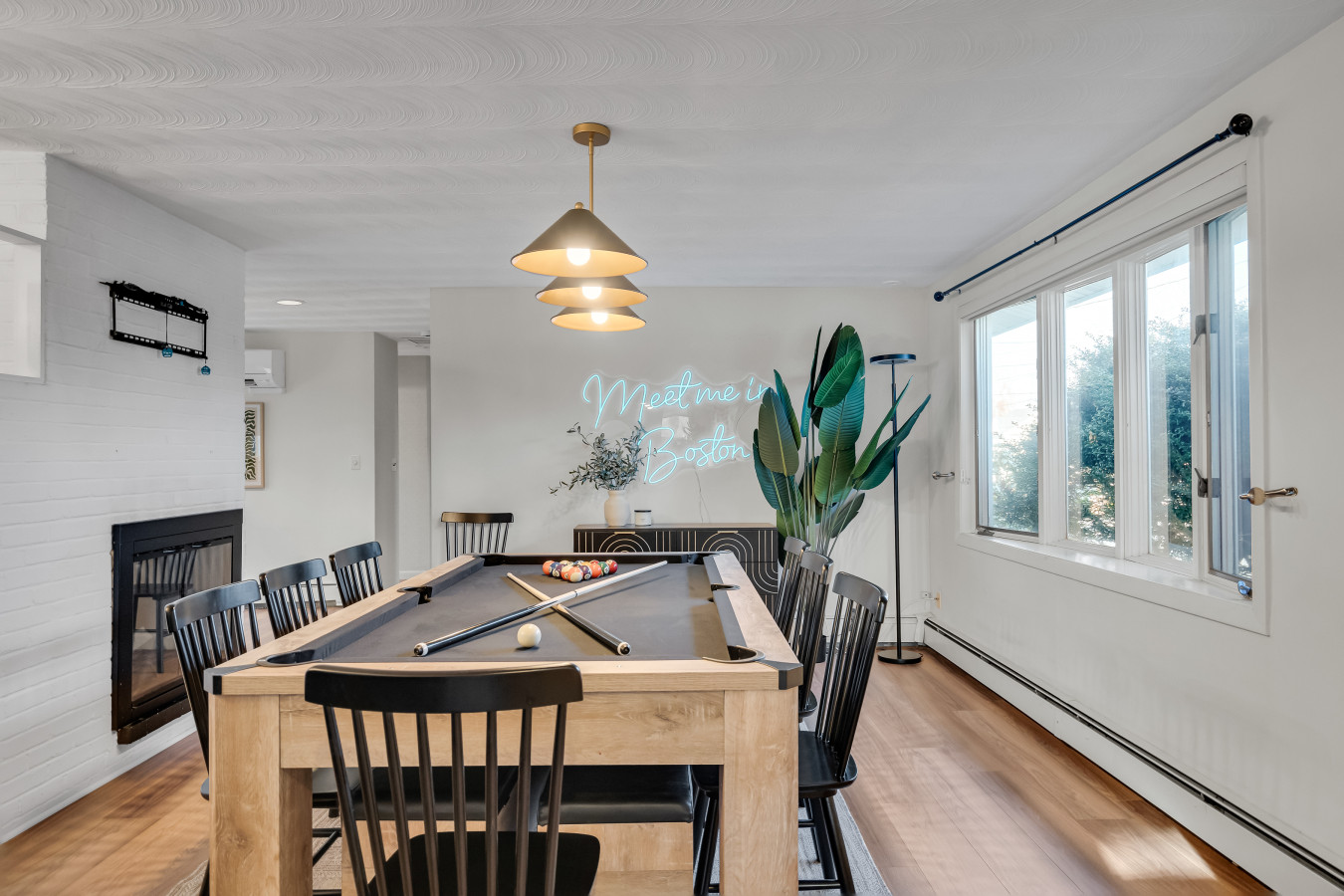 / nightA gleaming, beautiful pool – a rare find in the Boston area – awaits you at this must-visit retreat! This Boston getaway has 4 spacious bedrooms & a fully equipped kitchen that blends luxury and comfort. Relax in the cozy living area, challenge your group in the lively game room, or start your mornings with a specialty brew from the charming coffee bar. Spend your afternoons by the private pool in the serene, pet-friendly yard – the ideal escape for creating unforgettable memories together. This single family ranch style home is sunny + spacious 4-bed / 2-bathroom home that boasts over 1,500 sq ft of living area. Enjoy a light and bright family room, spacious dining/game room, full guest bathroom and cozy back office and kids bedroom overlooking a pool and patio for entertaining! The modern kitchen is fully equipped with a dishwasher, microwave, stove, oven and fridge. The dining area flows seamlessly into nicely sized bedrooms and a second full bathroom. The central AC has 5 mini-splits. Amenities include fully stocked kitchen, furnished bedrooms, smart TV (in living room and all bedrooms), baseboard heating, split ACs in all rooms and exclusive private swimming pool for summers Please note: A $1,000 refundable deposit will be charged to your credit card to cover any potential damages Note : Swimming pool open from (April 30- Sep 30) DINING AREA + GAME SPACE: We have a lovely dining nook (seats 8) where you can enjoy a relaxed meal or enjoy board games with your family and friends. The nook includes board games, billiards, table tennis, and a dining table (all in one). Challenge your companions to various games for a laid-back evening indoors. PARKING: House comes with 4 car dedicated parking spots (right outside the house) KITCHEN + COFFEE BAR When it's time to refuel, the fully equipped kitchen provides everything you need to whip up delicious meals and snacks. Enjoy your culinary creations at the dining table. Our coffee station provides a variety of local brews and teas. OUTDOOR: Step right outside from the kitchen area to a charming porch, perfect for summer dining or enjoying a BBQ grill session. Home also provides direct access to a private courtyard with plenty of room for outdoor dining. ADDITIONAL: We do have video surveillance of the front door, parking and backyard which helps us in maintaining the property from a distance. The video is motion activated, but can be checked at any time by the hosts via live feed. Any attempt at disabling or obscuring the cameras is prohibited. LOCATION: This home is perfectly situated just 30 minutes from the bustling heart of downtown Boston, offering easy access to iconic attractions like Fenway Park, the Boston Common, and the Freedom Trail. For local shopping and dining, the Natick Mall, one of the largest malls in New England, is just 5 minutes away. Explore a mix of high-end stores, casual eateries, and entertainment options. Whether you're seeking urban excitement or suburban convenience, this location offers the best of both worlds! QUIET HOURS: The neighborhood has families staying in surrounding houses. (10 pm - 8 am are strictly quiet hours). Loud music/noise/events are strictly not permitted. WIFI: We have a high-speed fiber-optic connection available. The WIFI password will be shared prior to your stay PETS: - Up to 2 pets allowed ($100 fee per stay). Approval needed for more, with extra fees. - Keep pets leashed while walking in the neighborhood. - No unattended pets - No pets on furniture (sofas, beds, etc). - Clean up after them inside and outside. - Prevent excessive barking or noise. While $100 pet fee covers extra cleaning, but additional charges apply for uncollected pet waste, soiled linens, or damaged furniture. Thanks for keeping our space pet-friendly for all! The nightly rates are reflective of minimum guest booking with no pets. We request you to add the exact count of guests, children and pets at the time of reservation for the nightly rates to be accurately reflected for any additional charges. SMOKING/DRUGS POLICY This is no smoking and no drug use house. Use of such is strictly prohibited inside or outside on premises. $500 fee for evidence of smoking or drug use plus additional cleaning fees apply. GUNS: Guns or firearms are absolutely prohibited on this property.