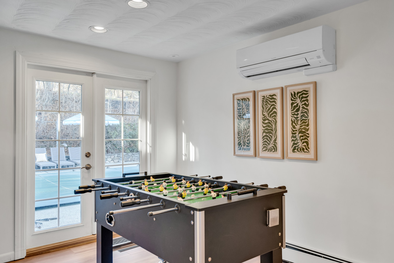 December 2025 4.00The house has electric baseboard And the thermostats are locked in boxes. It was sent to 62 during daytime hours but it cranked up at night. There are mini splits that guests can control but for December stay in New England, it would have been nice to have the mini splits on and warming the house when we checked in. Leaving the baseboards at the same temp might be better than it going up a night. The bunk room is in the same place as the mechanical equiptment so it wasn’t a good place for kids to sleep because the machines were going on and off all night. The bathrooms and kitchen were quite rundown, but the common spaces were perfect for us! I don’t know if the price changes seasonally but I would have felt better about the value if it had been summer so we could use the pool. Location is excellent, very convenient. It snowed so great that there was a shovel and salt! Would stay again for sure.