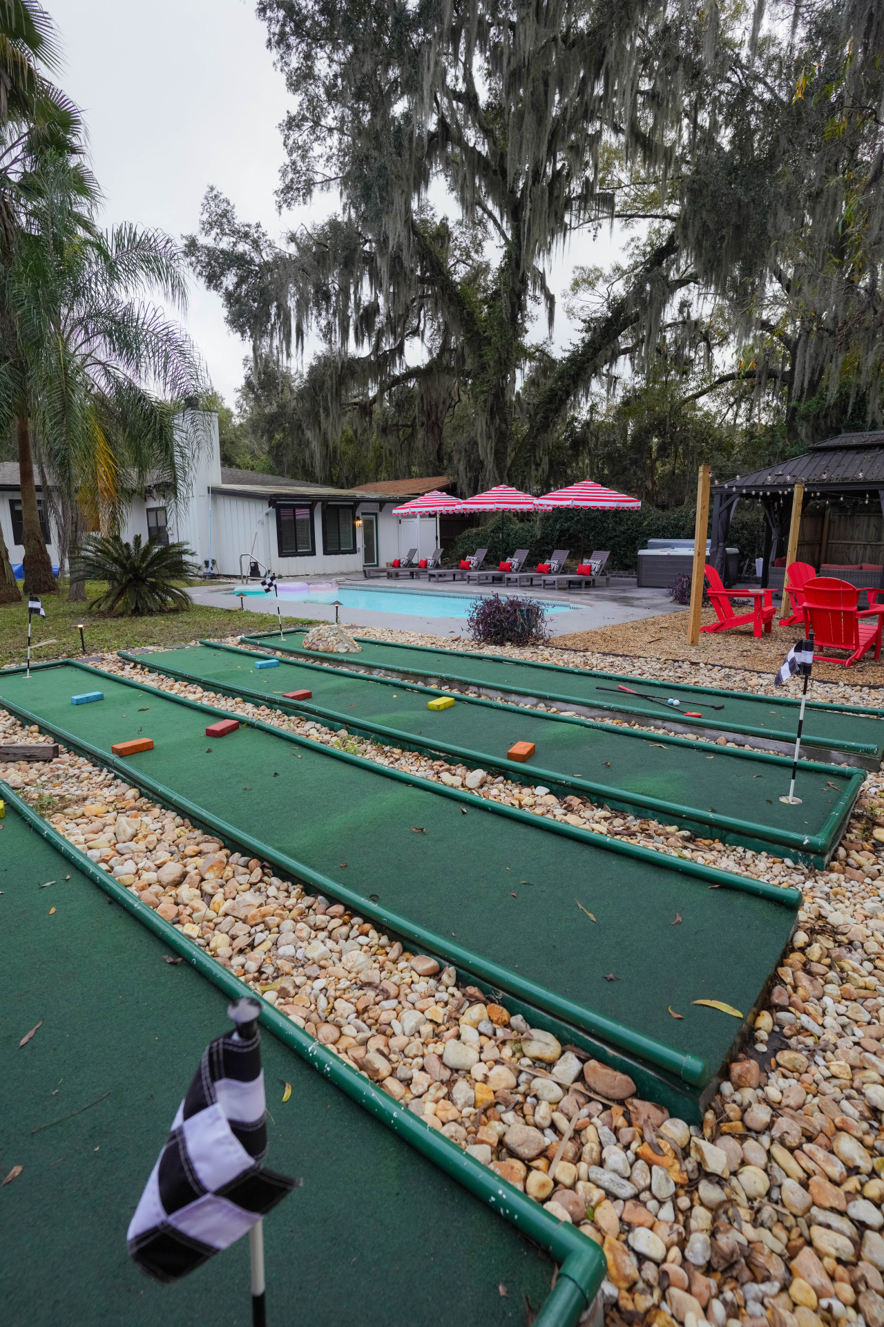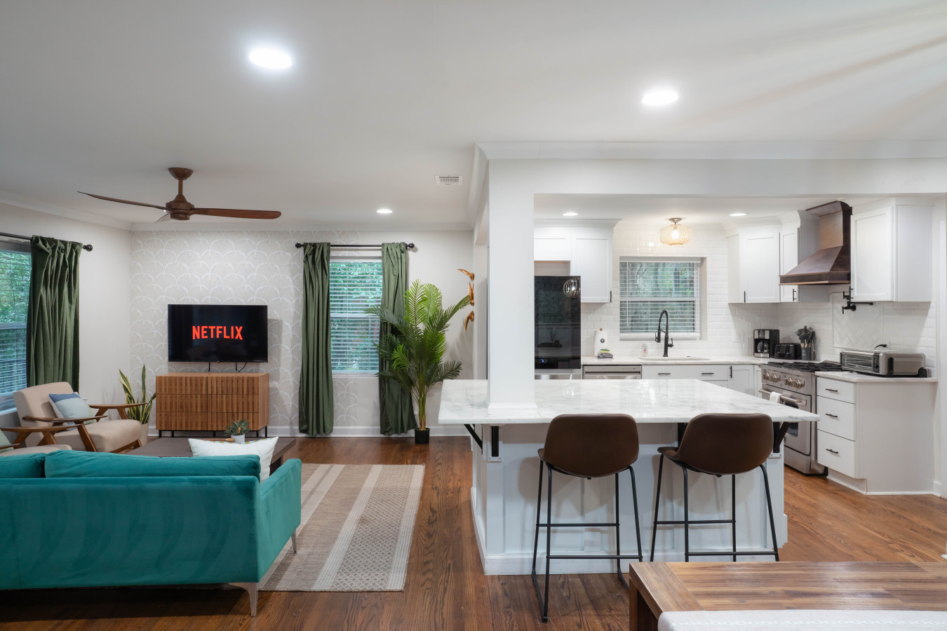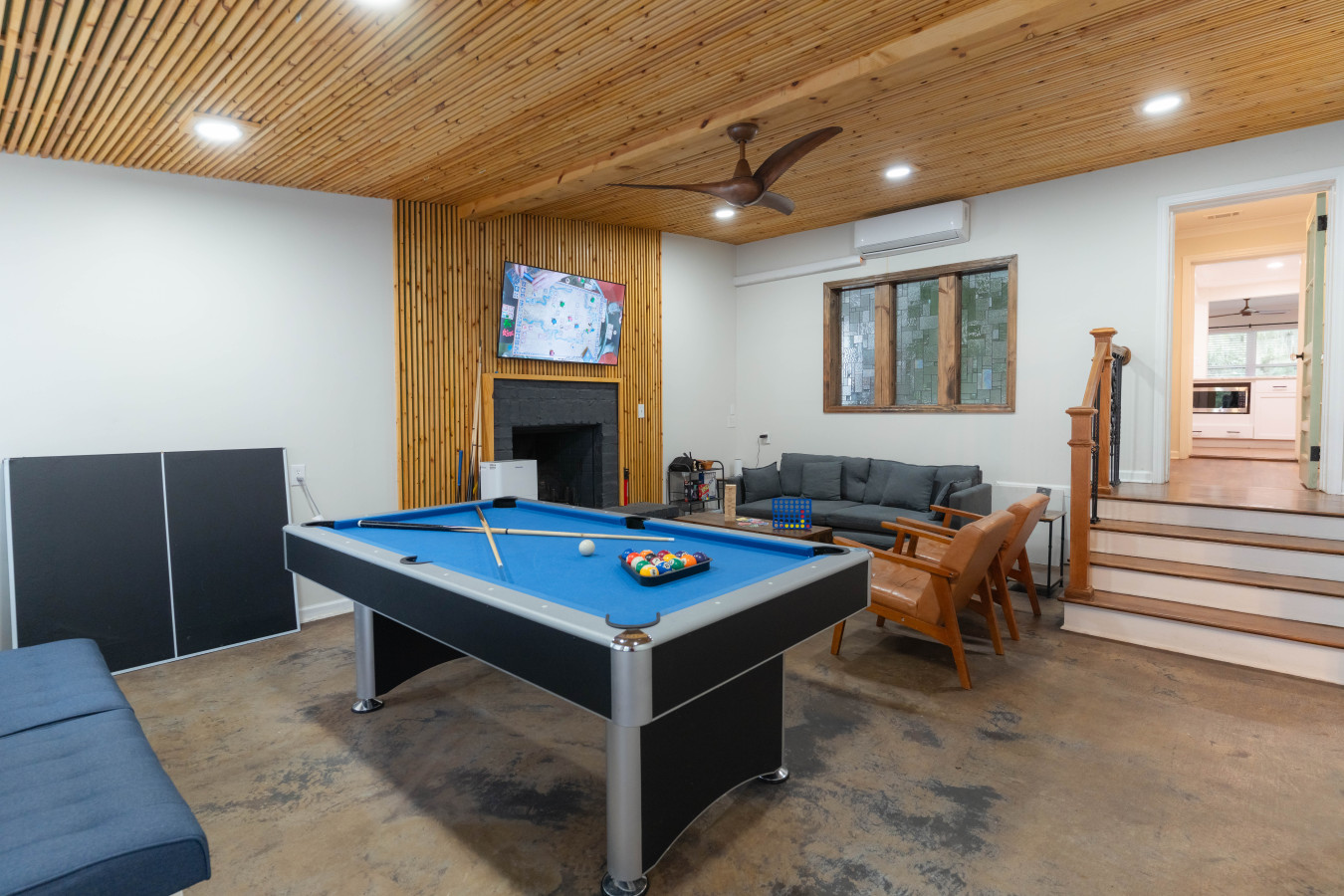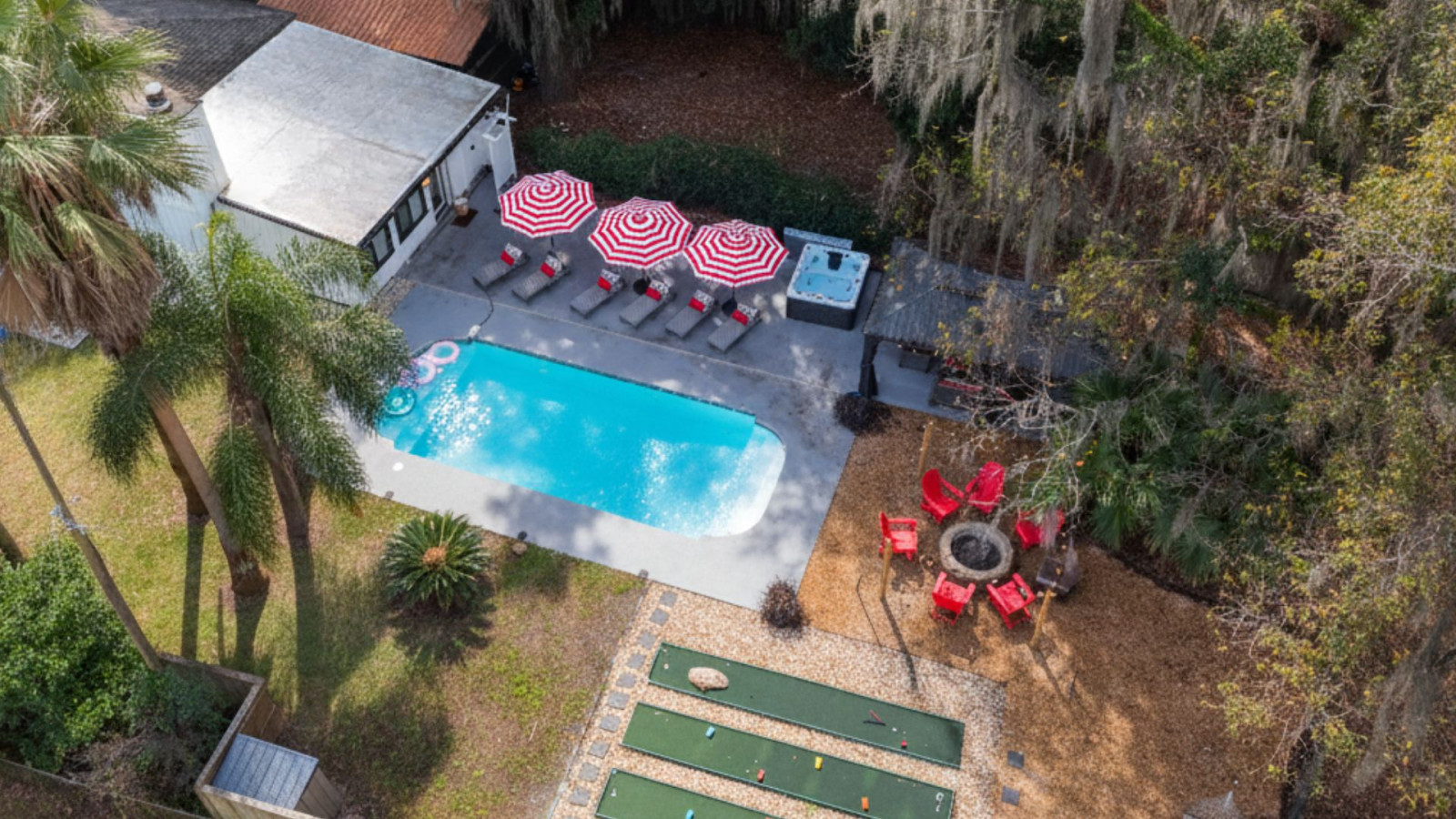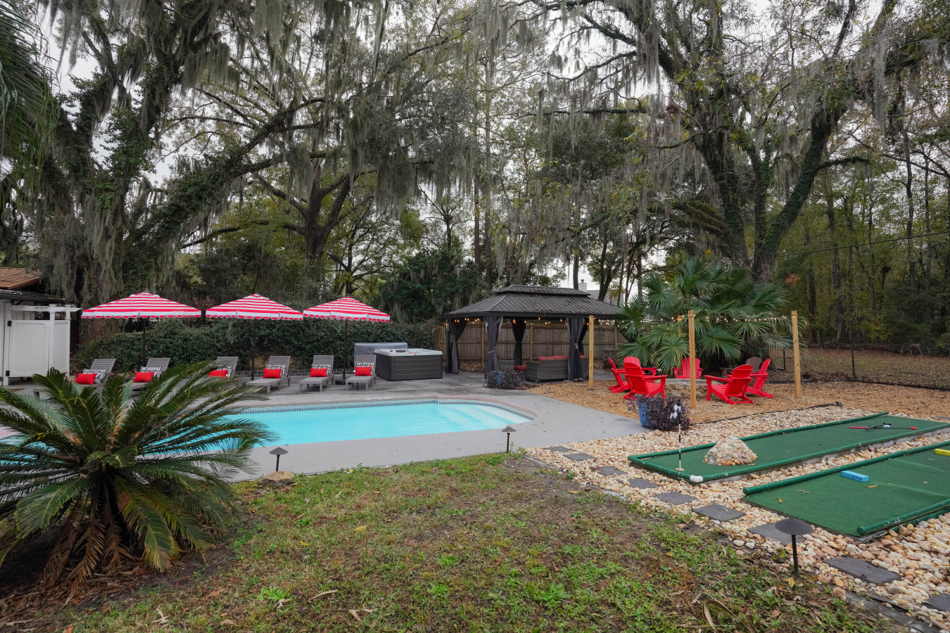 / nightEscape to your ultimate Savannah dream home! Heated Swimming Pool,Hot Tub, Mini Golf, Pool Table, Ping Pong, Outdoor Firepit, BBQ - all now available at once place Step into a "one-of-a-kind" Savannah experience where high-end design meets endless entertainment. Located in a dreamy setting tunneled by majestic oak trees, this newly renovated home provides a cozy yet sophisticated atmosphere for your entire group The space You're not just booking a home; you're securing a prime piece of Savannah's magic—located just a prime location from the breathtaking, oak-lined avenue of the iconic Wormsloe Historic Site! Immerse yourself in history and beauty, then return to your spacious sanctuary for pure relaxation. Outdoor Amenities: *Heated Swimming Pool, Sun Loungers *Hot Tub *Mini Golf *Outdoor Firepit *Outdoor Shower *BBQ Indoor Amenities: *Spacious 4 bedroom, 3 bathroom living area *Full-Sized Pool Table *Dedicated Game Room *Board Games *Modern Kitchen Additional Amenities: *Free Wi-Fi *Washer and dryer *Ample free parking (2 car covered shed parking and 2 car drive-way parking) *Central air conditioning and heating in main house *Family- and group-friendly common spaces This single-level bungalow features 4 Spacious Bedrooms + 3 Full Bathrooms: Each bedroom is thoughtfully designed with comfort in mind, featuring plush bedding, ample storage, and charming decor. Bedroom 1 - King + Full Bathroom Bedroom 2 - Queen Bedroom 3 - Queen Office Space 4 - Queen Game Room - Sofa Bed Chef's Dream Kitchen: Fully equipped with sparkling modern appliances and every essential you need to host like a pro. Whether you're preparing a lavish group dinner or shaking up cocktails before a night out, this kitchen is your perfect hub. Spices and baking supplies for those planning memorable holiday meals. Plus, start every day perfectly at our coffee station, featuring premium roasts and everything you need for your morning ritual! Dining Area: Gather your group around the elegant dining table to share meals, stories, and laughter. Spacious Living Areas: Relax and unwind in the cozy living room, complete with a flat-screen TV OUTDOOR OASIS: There is direct access to a private courtyard with a large swimming pool and plenty of room for outdoor entertainment. The swimming pool area features sun bathing recliners and lounge seating under the pergola with fire pit and BBQ grill in a fully private and enclosed backyard. Note: There is a patch of chipped paint area on the pool bottom that is purely cosmetic. It does not affect water quality, safety, or usability. The pool is fully swimmable, regularly maintained, and the appearance should not be mistaken for algae. This space has you covered! Step into a world of fun and relaxation with endless amenities to enjoy together. Challenge your crew to a round of mini golf or unwind around the firepit. Whether you’re planning a historic adventure, a beachside escape, or a festive weekend, this home offers everything you need to relax, celebrate, and make lasting memories. Book now and start creating unforgettable memories. We are committed to maintaining a respectful environment for all our neighbors and hence 10 pm - 8 am are strictly quiet hours. No music/loud noise/outdoor events are permitted at this property during the quiet hours. LOCATION: Only half a mile away, you'll find excellent dining options in the Sandfly area. Downtown Savannah is just a 15-minute drive, and the airport is a convenient 30-minute journey. Additionally, in just 30 minutes, you can reach the beautiful Tybee Island beach ADDITIONAL: We do have video surveillance of the front door, driveway & grass areas at the back which helps us in maintaining the property from a distance. The video is motion activated, but can be checked at any time by the hosts via live feed. Any attempt at disabling or obscuring the cameras is prohibited. Note there is a gun club in the vicinity and while the house is sufficiently sound proof, you may occasionally hear gun shots if you are hanging outside in the backyard. We welcome all groups (friends and families) to our home, as long as rules are followed. We have a zero tolerance policy for parties. PETS: We are a pet friendly home, so feel free to bring over your furry friends during your stay. - Up to 2 pets allowed ($100 fee per stay). Approval needed for more, with extra fees. - Keep pets leashed while walking in the neighborhood. - No unattended pets - No pets on furniture (sofas, beds, etc). - Clean up after them inside and outside - Prevent excessive barking or noise. While $100 pet fee covers extra cleaning, but additional charges apply for uncollected pet waste, soiled linens, or damaged furniture. Thanks for keeping our space pet-friendly for all! SMOKING/DRUGS POLICY This is no smoking and no drug use house. Use of such is strictly prohibited inside or outside on premises. $500 fee for evidence of smoking or drug use plus additional cleaning fees apply. The nightly rates are reflective of minimum guest booking with no pets. We request you to add the exact count of guests, children and pets at the time of reservation for the nightly rates to be accurately reflected for any additional charges.