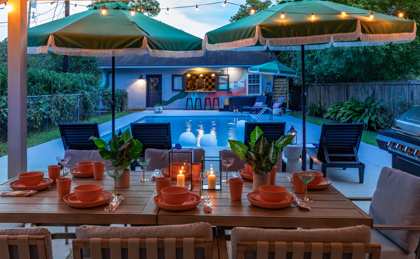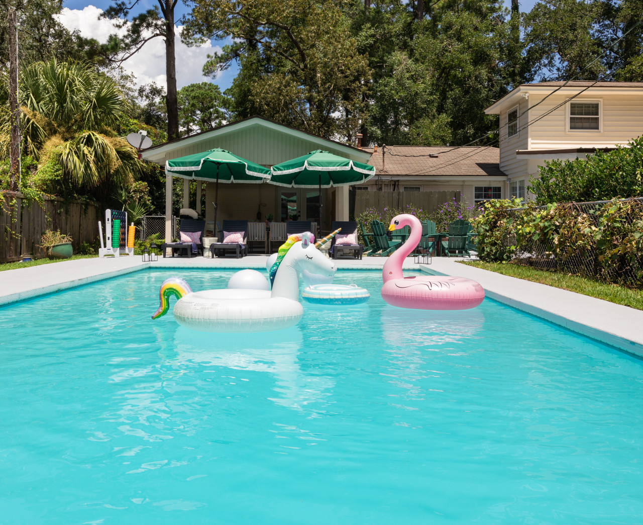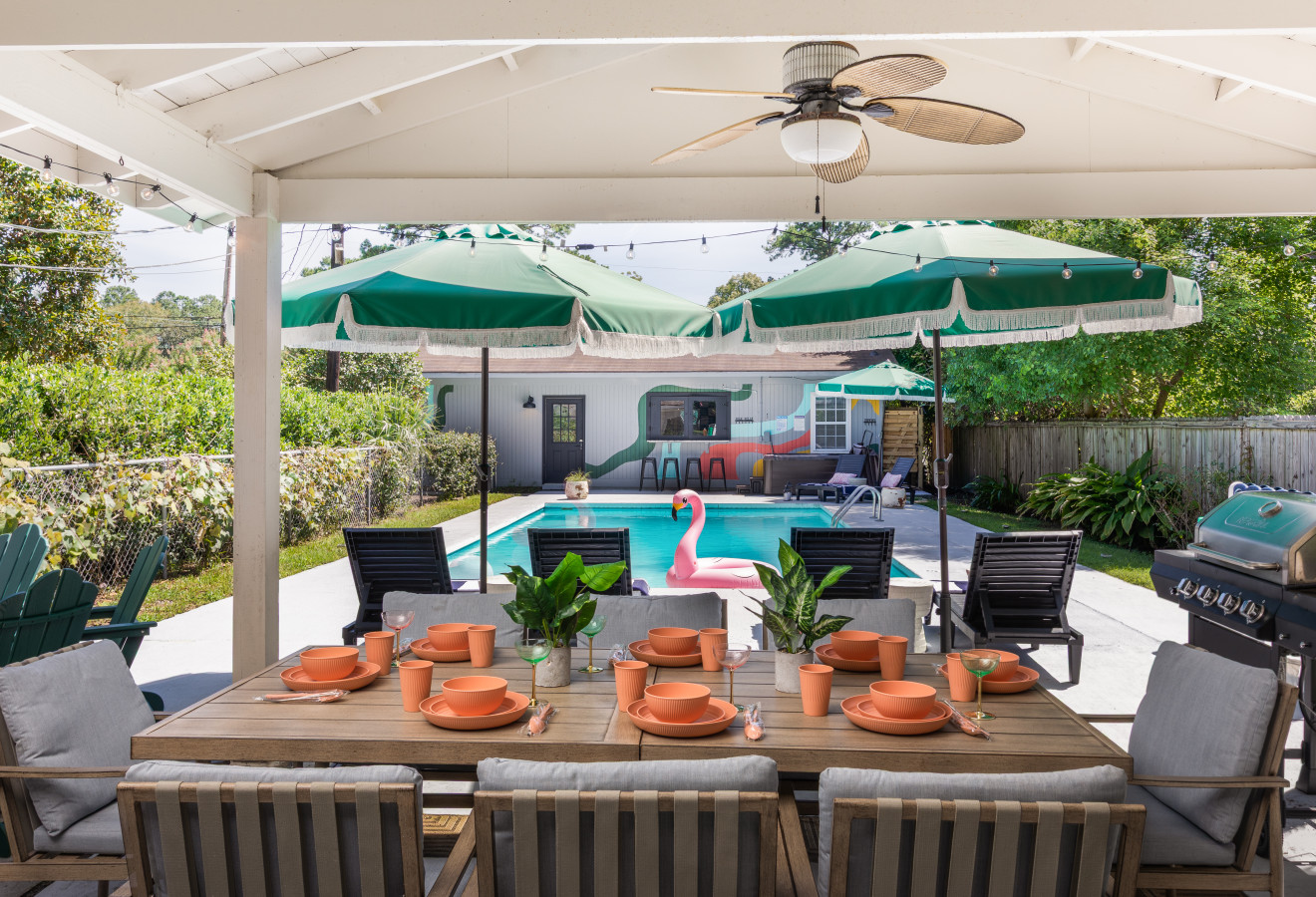 / nightWelcome to Your Dream Savannah Retreat! This stylish & spacious 6-bedroom getaway offers the perfect blend of comfort, elegance, & modern charm, ideal for family reunions, group vacations, or an unforgettable staycation. Just a min from the iconic Wormsloe Historic Site, elevate your getaway in this ultimate entertainment hub! Game room has a pool table, shuffleboard, arcade games, golf simulator, & karaoke setup. Outdoors has a swimming pool, hot tub, bar area, and convenient outdoor shower. Inside the Home: BEDROOMs: Each of the 6 bedrooms is thoughtfully decorated with plush bedding, ample storage, and charming touches — designed with relaxation in mind. There are 3 full bathrooms in the house. KITCHEN Fully equipped gourmet kitchen with modern appliances and all the essentials for group cooking, cocktails, or late-night snacks. DINING: Gather around the large dining table for meals, laughs, and unforgettable moments. LIVING: Lounge in the comfortable living room with plenty of seating and a flat-screen 85 inch TV — perfect for movie nights or morning coffee chats. GAME ROOM: Step into a one-of-a-kind game room, a true gamer's paradise. Challenge your group to a game of pool, rack up high scores on the classic arcade games, or test your swing on our professional golf simulator. For late-night fun, the karaoke setup and shuffleboard promise endless laughs. The golf simulator doubles as a large projector screen, perfect for movie nights and streaming your favorite shows. PATIO & POOL Your private backyard awaits! Lounge on the patio and take a refreshing dip in the private pool (3-6 ft deep, open all year). Unwind and relax in the luxurious hot tub, then grab a drink from the convenient outdoor bar area. An outdoor shower is available for rinsing off after a swim. Pool is open all year round. However, be mindful that Savannah is a seasonal state and sometimes the high winds or rainfall may not support you to use the pool fully during your stay. Pool cleaning is performed regularly each week. However, leaves and dirt can easily make way on stormy days making pool unavailable for those days. NOTES - Parking: House comes with 5 car drive way parking. - 10 pm - 8 am are strictly quiet hours. Loud music/noise/events strictly not permitted. - Keypad entry for flexible check-in - If you are bringing along a dog, we thought of letting you know that dog poop needs to be bagged and disposed from the yard. Whether you're here for a friends’ weekend, a historical adventure, or a peaceful beach escape, this home offers the perfect base for creating lasting memories in Savannah. AREA: We are located close to the below attractions: - Wormsloe Historic Site – 1 minute: Walk the famed oak-lined avenue and dive into Savannah’s rich history. - Downtown Savannah – 15 minutes: Discover River Street, boutique shopping, and lively restaurants. - Tybee Island – 25 minutes- Perfect for beach days, water adventures, or exploring this charming coastal gem. SECURITY: We do have video surveillance of the front door & driveway which helps us in maintaining the property from a distance. The video is motion activated, but can be checked at any time by the hosts via live feed. Any attempt at disabling or obscuring the cameras is prohibited. PETS: We are a pet friendly home, so feel free to bring over your furry friends during your stay. - Up to 2 pets allowed ($100 fee per stay). Approval needed for more, with extra fees. - Keep pets leashed while walking in the neighborhood. - No unattended pets - No pets on furniture (sofas, beds, etc). - Clean up after them inside and outside - Prevent excessive barking or noise. While $100 pet fee covers extra cleaning, but additional charges apply for uncollected pet waste, soiled linens, or damaged furniture. Thanks for keeping our space pet-friendly for all! SMOKING/DRUGS POLICY This is no smoking and no drug use house. Use of such is strictly prohibited inside or outside on premises. $500 fee for evidence of smoking or drug use plus additional cleaning fees apply. The nightly rates are reflective of minimum guest booking with no pets. We request you to add the exact count of guests, children and pets at the time of reservation for the nightly rates to be accurately reflected for any additional charges.