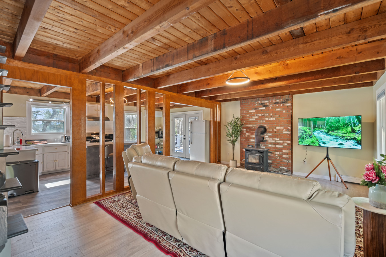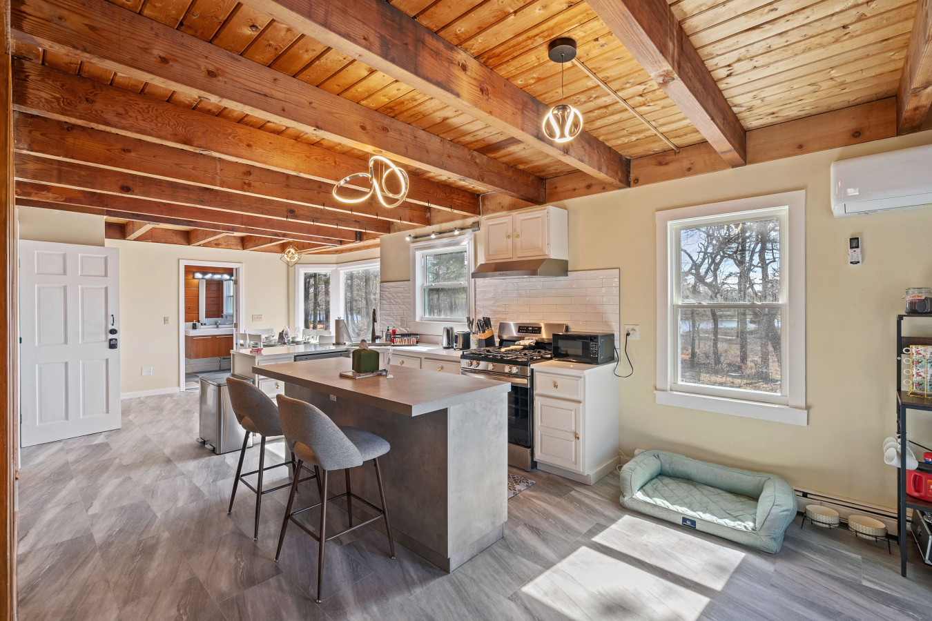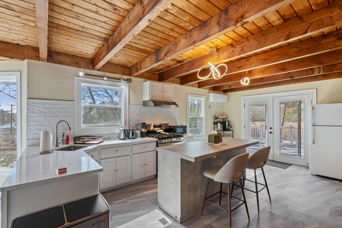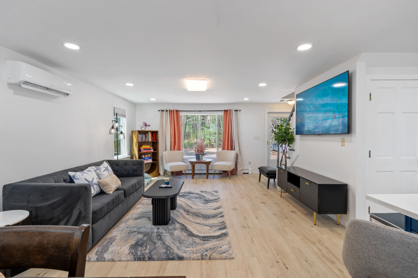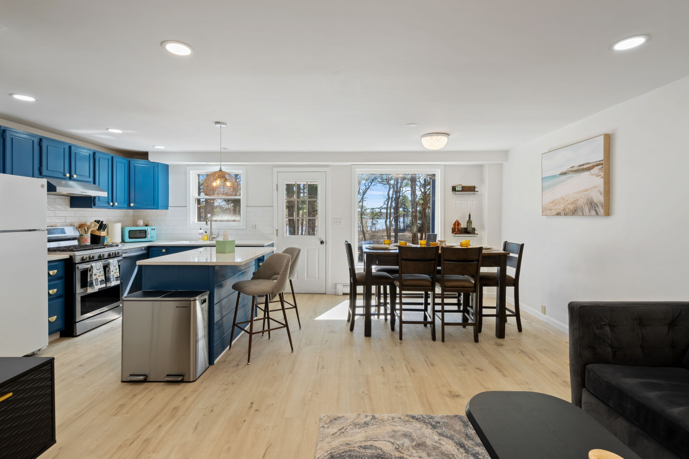 / nightCoastal charm meets modern comfort in this bright and spacious 6-bedroom, 4-bath large home (2 units combined) in Wareham, Massachusetts nestled along the serene banks of the Wareham River, this tranquil retreat offers panoramic water views — your perfect retreat for exploring Cape Cod. Located only 1/2 mile to put your feet in the sand and enjoy the ocean. Conveniently located near beaches, marinas, cranberry bogs, and Wareham Crossing’s shops and dining, this home is ideal for families, groups, or professionals looking for a relaxing coastal escape. You're just minutes away from Onset Beach, Cape Cod Canal, and Route 6 for easy day trips to Falmouth, Sandwich, or Martha's Vineyard ferries. The Space Welcome to your Cape getaway! This thoughtfully designed single-family home offers open and airy living space — perfect for vacationers who value comfort, style, and convenience. Note: This listing comprises of both units combined so there are 2 living rooms, 2 kitchens and 2 entry doors. 6 Bedrooms: Level 1: One Queen bed Second queen bed Third Queen bed Level 2: One king bed Another king bed 1 bunk beds (twin over full) and another full bed Each room comes with fresh linens, ample closet space, and blackout curtains for restful sleep. 4 Full Bathrooms: Modern and clean showers, luxury towels, and all included toiletries. Fully Stocked Kitchens: This listing offers access to two full kitchens. Enjoy a gourmet kitchen with stainless steel appliances, quartz countertops, cookware, bakeware, coffee maker and everything you need for a perfect dinner indoors. Living + Dining: An open-concept living and dining area with a smart TV, cozy sofa, and a dining table perfect for group dinners or board games. Glass doors lead to the private backyard featuring a grill, patio furniture, and string lights — perfect for al fresco dining. Entertainment Perks: -Featured bar area -Board games for all ages -High-speed Wi-Fi -Washer/Dryer for extended stays -Portable pack and play, high chair and kids utensils available -Movie Theatre -Kids toys/books/play area Outdoor Amenities: -Enjoy use of the large backyard with a fire pit, grill, and outdoor seating. A great space to unwind after a day at the beach or out on the water. -From the home, you’ll have a view of the beautiful Wareham River. While there isn’t a pier directly on the property, you can take a short walk through the wooded area to reach the water. - Beaches around: Swifts Beach: 0.8 miles (~3 mins drive) Onset Beach: 5 miles (~13 mins drive) Shell Point Beach: 5.8 miles (~14 mins drive) Parking: Driveway fits up to 5 cars Guest Access Guests have access to the entire home, front and back yards, and full driveway. Self-check-in with smart lock for your convenience. Pet friendly: We are a pet friendly home, so feel free to bring over your furry friends during your stay. - Up to 2 pets allowed ($100 fee per stay). Approval needed for more, with extra fees. - Keep pets leashed while walking in the neighborhood. - No unattended pets - No pets on furniture (sofas, beds, etc). - Clean up after them inside and outside - Prevent excessive barking or noise. While $100 pet fee covers extra cleaning, but additional charges apply for uncollected pet waste, soiled linens, or damaged furniture. Thanks for keeping our space pet-friendly for all! Additional Notes NO parties or events allowed Please register all guests, children, and pets at booking Exterior security cameras are installed (front and back) for safety and property monitoring Whether you're planning a weekend retreat or a longer seaside stay, this Wareham home gives you the best of Cape Cod without the traffic. Minutes from beaches, restaurants, and classic New England charm — this is where memories are made
