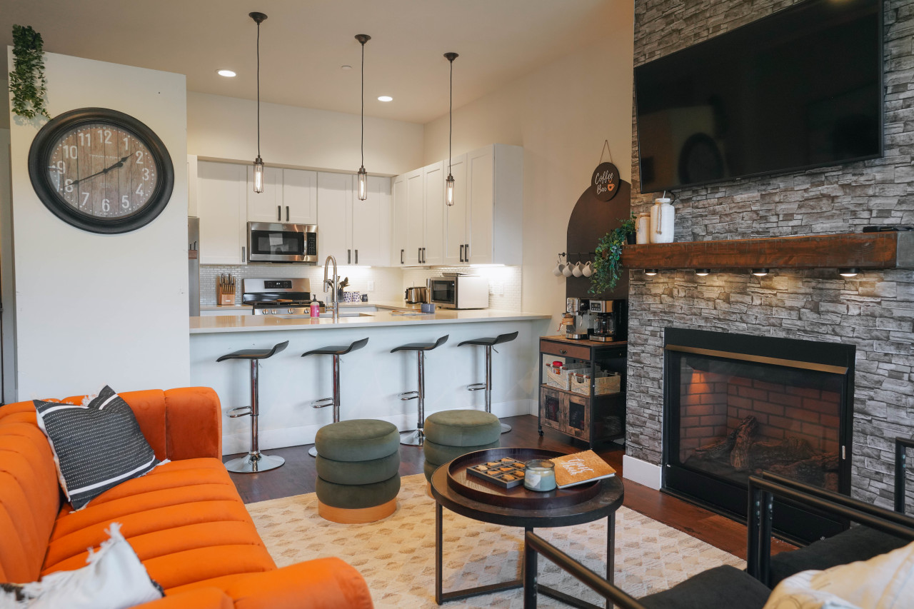 November 2025 4.00The location and layout were great. Easy walking to trails and dining and drinking. Two showers, sleeping upstairs and living downstairs was great. Overall the place just needs some attention: more utensils, dishes for cooking and eating. Bluetooth door lock batteries were dead and fireplace didn’t light. It was priced right. We won’t return here bc the diner touches were missing.